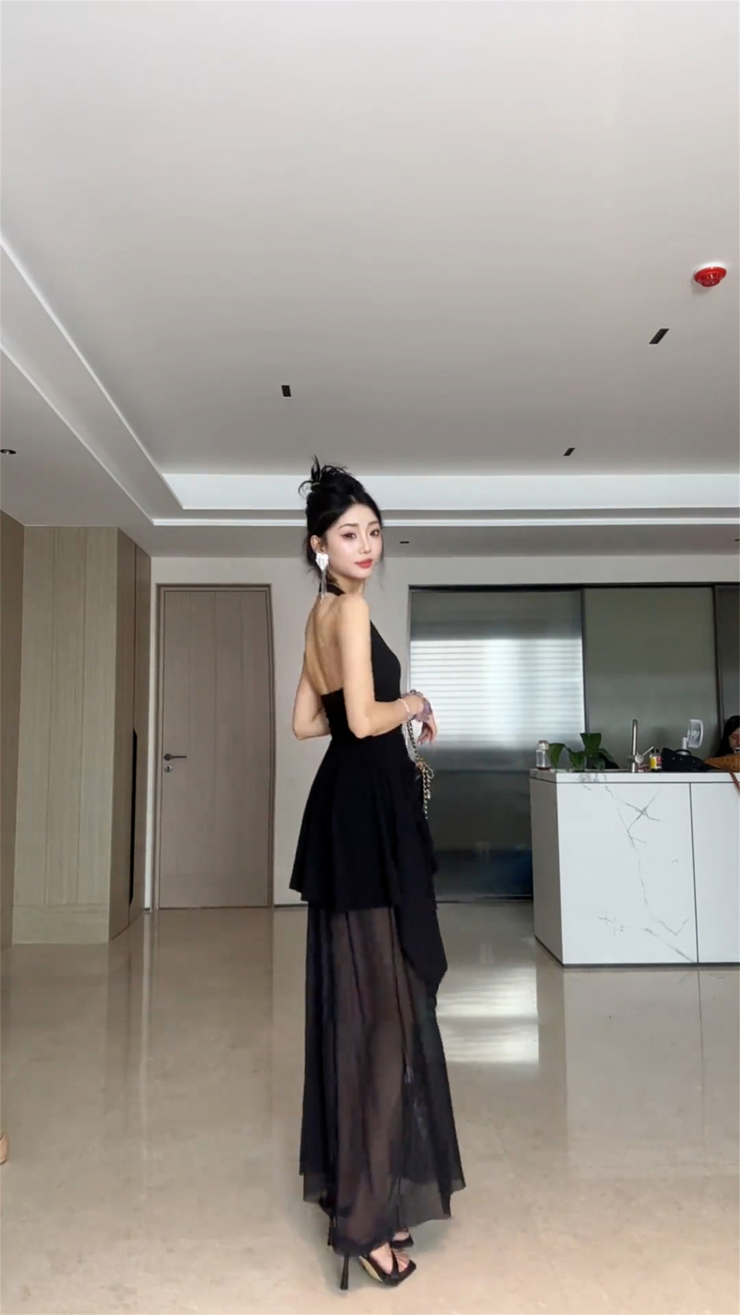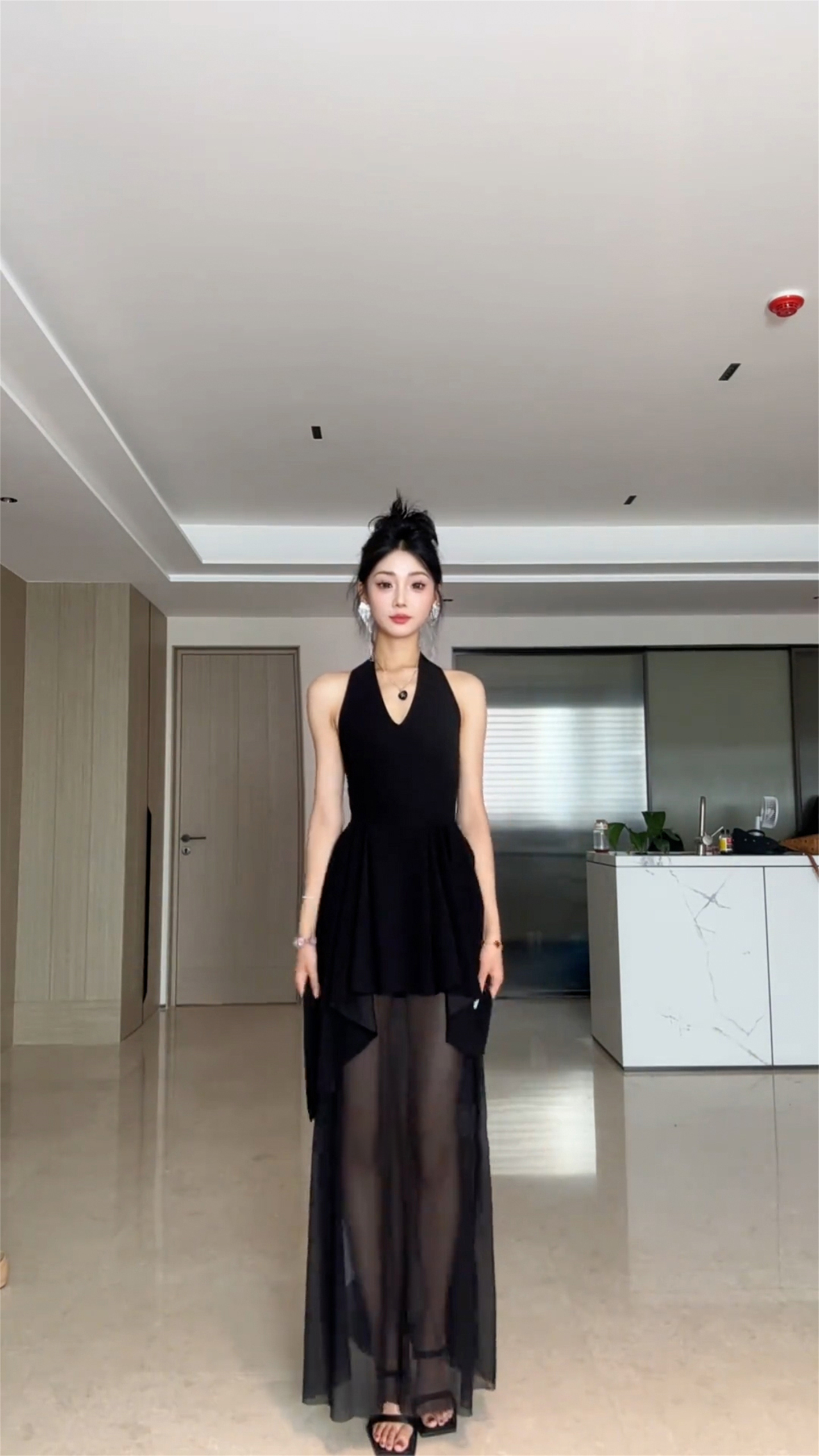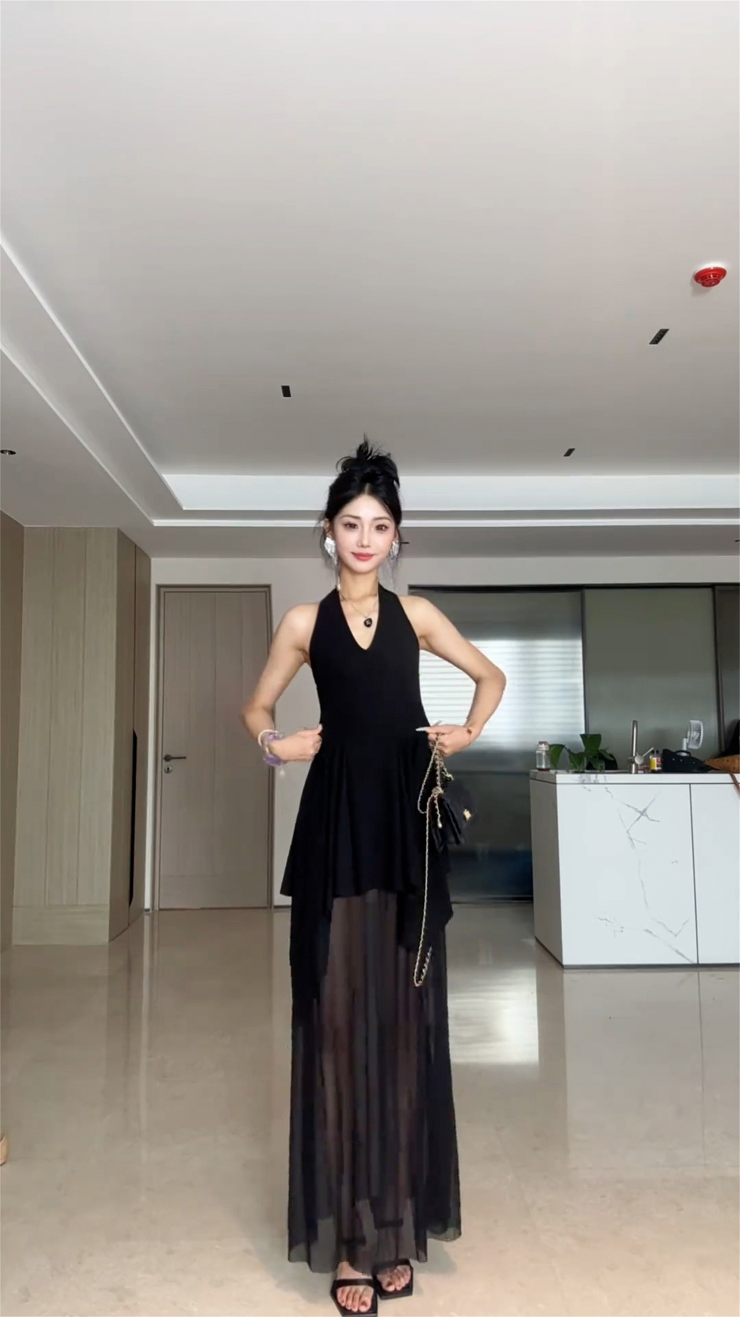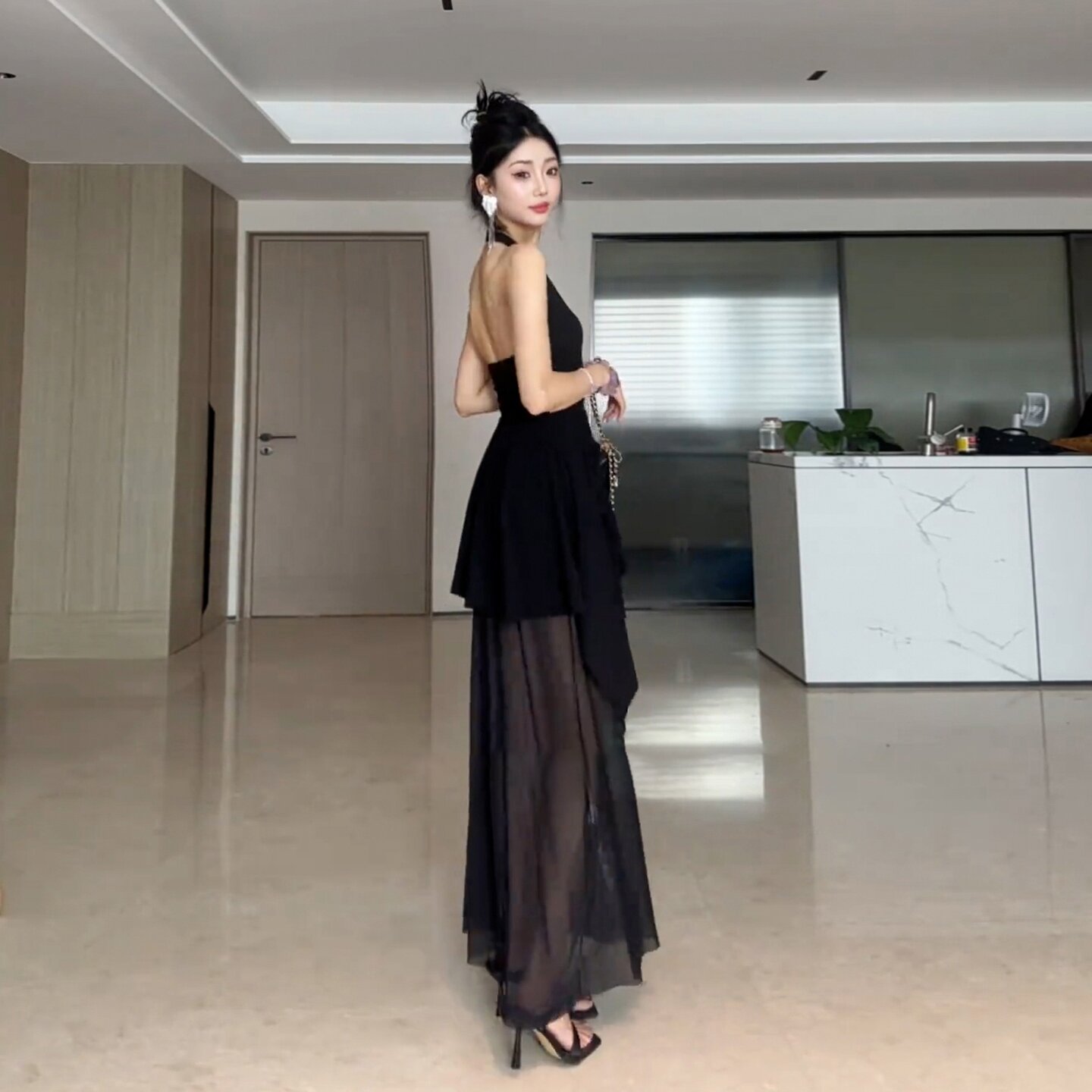 외출용 섹시함 백리스 민소매 허리 수축 맨위 순수한 욕망 바람 핫걸 행침 목 검정색 조끼 여성 새로운 여름