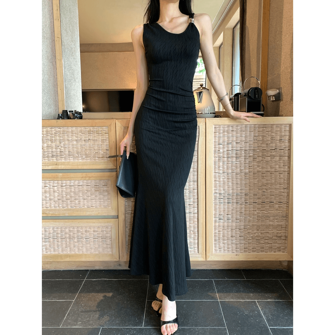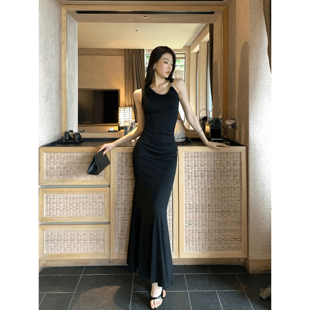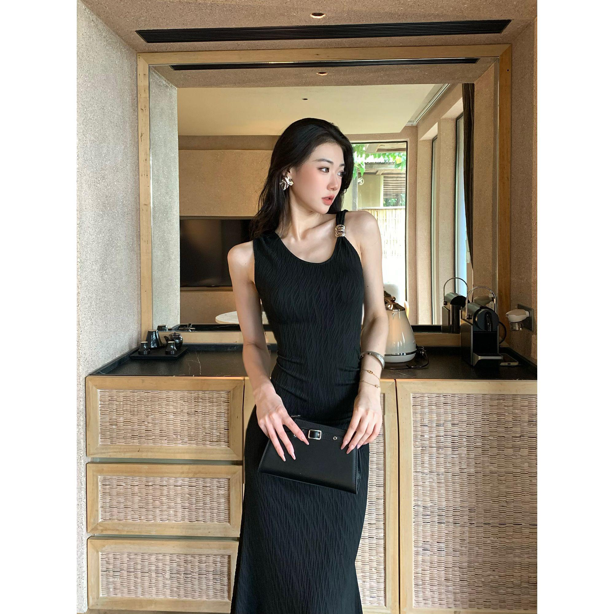 패션 여름 몸매 가꾸기 품격 그는 벤 바람 허리 수축 슬림해 보이는 검정색 드레스