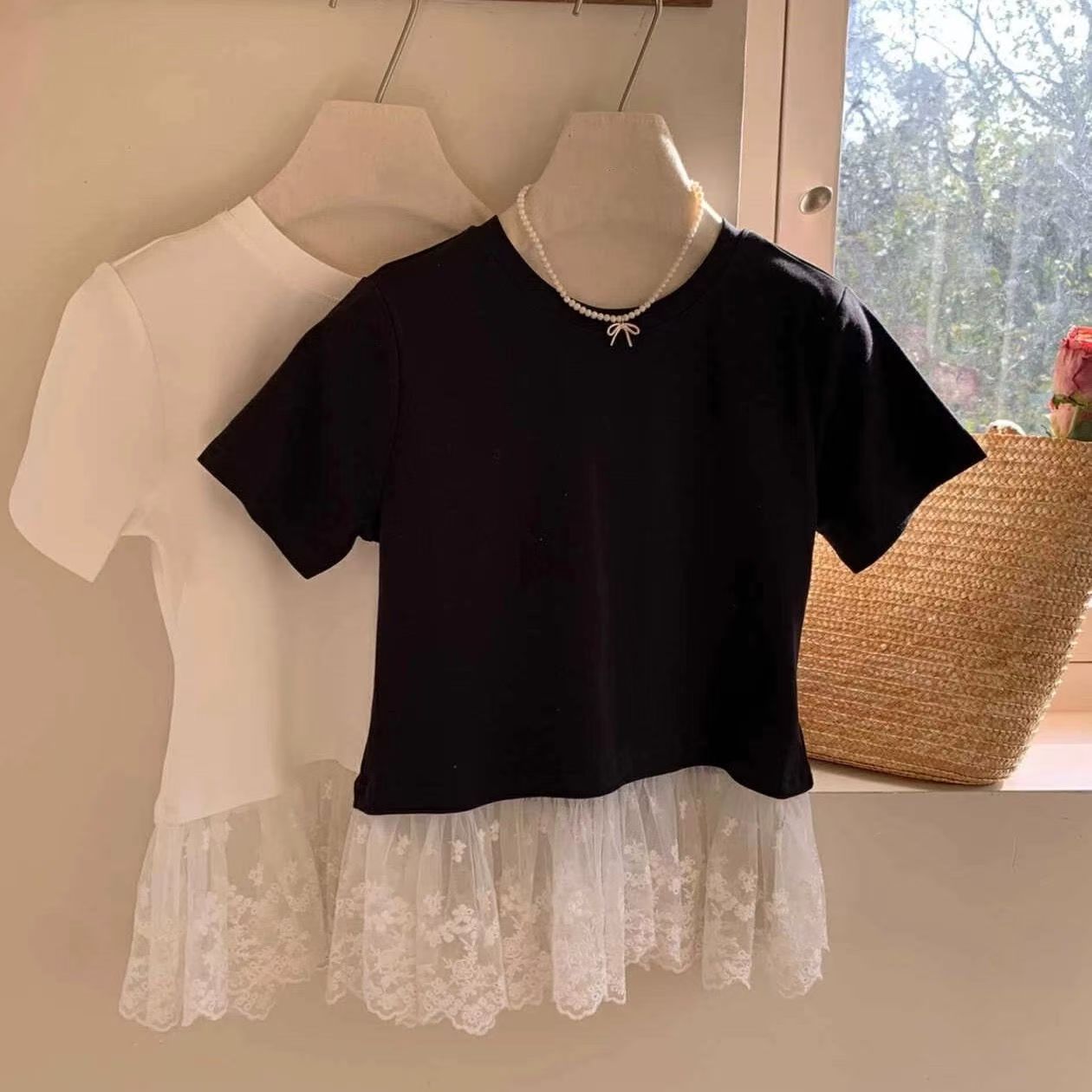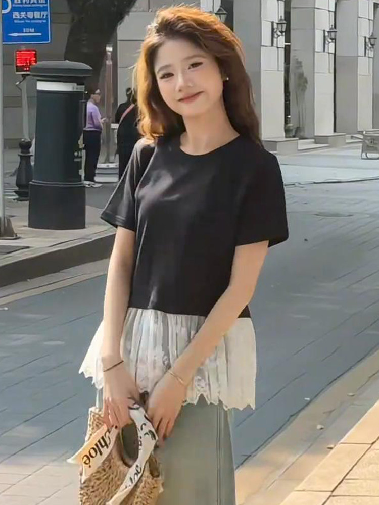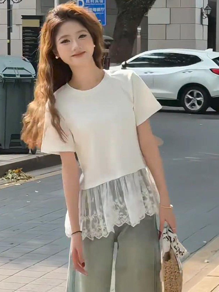 여름 드레스 빅 사이즈 발레 바람 레이스 조각 반팔 티셔츠 지방 mm 슬림해 보이는 인사이드 가져 가라. 만나는 맨위 m-4xl200 근