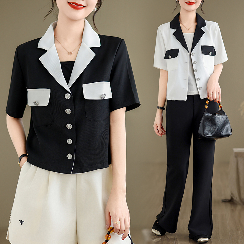 실사 빅 사이즈 2026 여름 지방 mm 빅 사이즈 패치워크 페이크 레이어드 레이스 반팔 셔츠 디자인 센스 슬림해 보이는 맨위