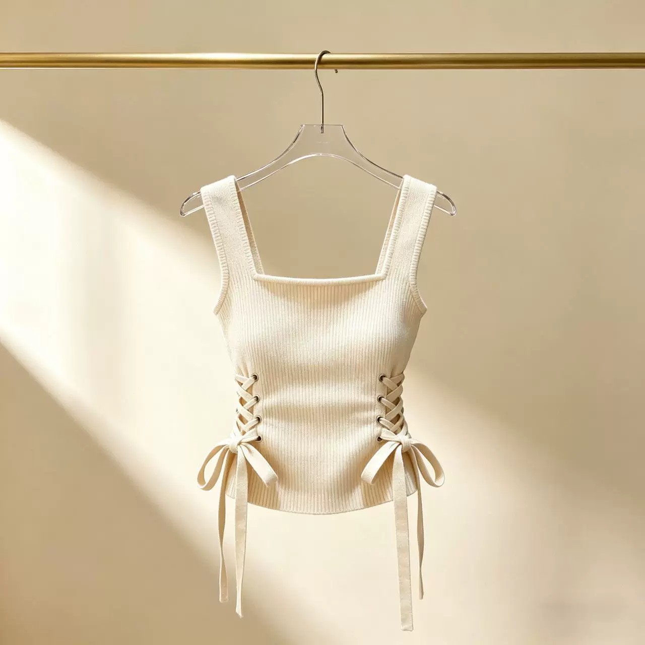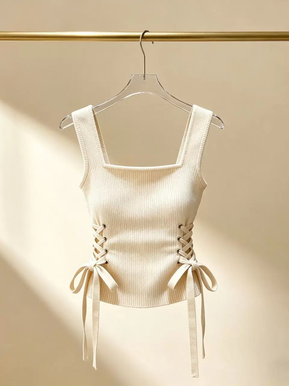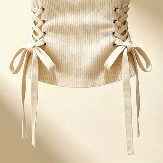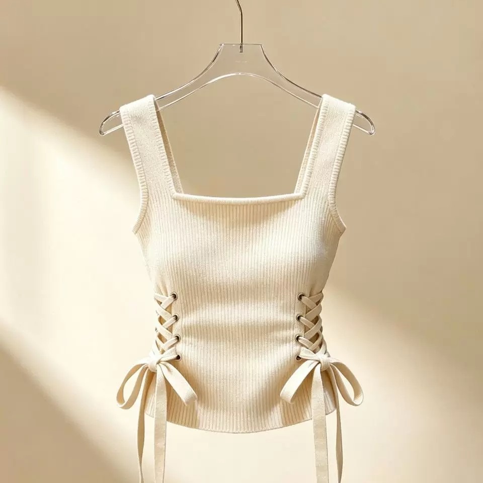 작은 대중 새로운 니트 슬립 펌프 로프 조끼 봄 몸매 가꾸기 디자인 여성 기본 셔츠 외국 가스 쇼트 스타일 민소매 맨위