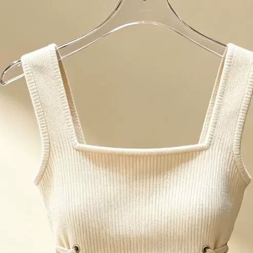 스트랩 디자인 니트 캐미솔 새로운 프랑스식 외국 가스 슬림해 보이는 다용도 작은 대중 허리 수축 민소매 맨위 서비스