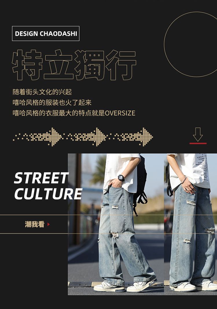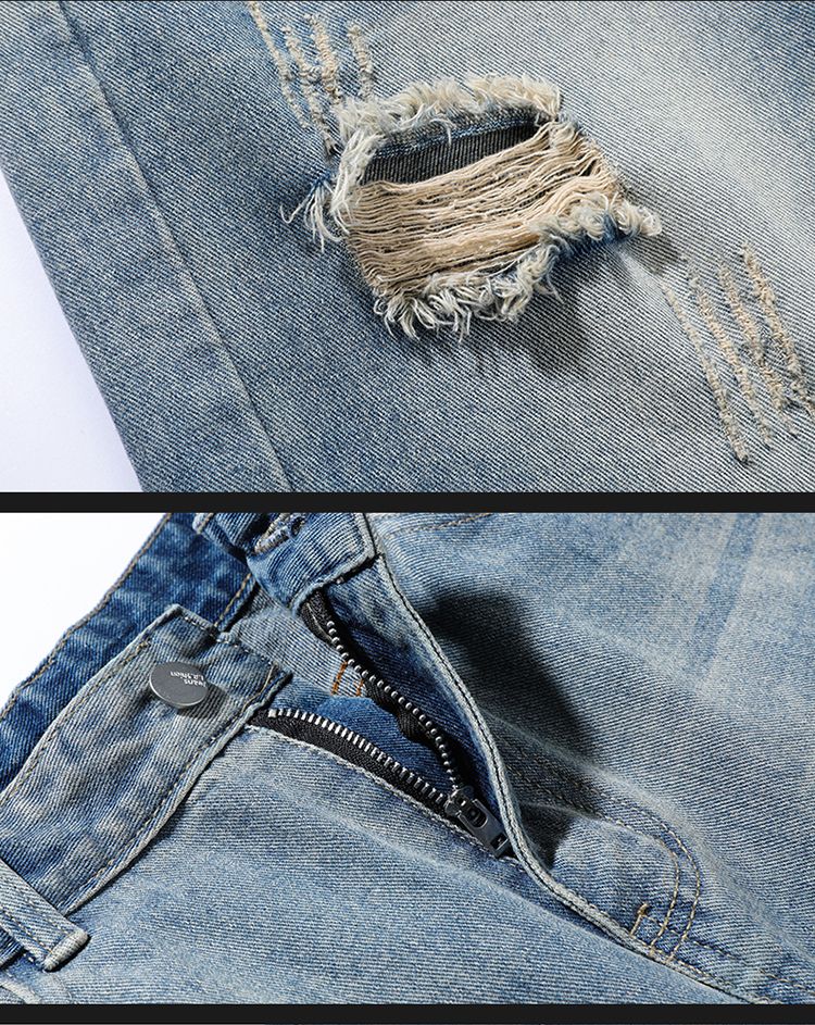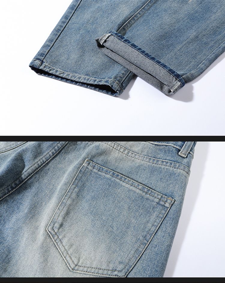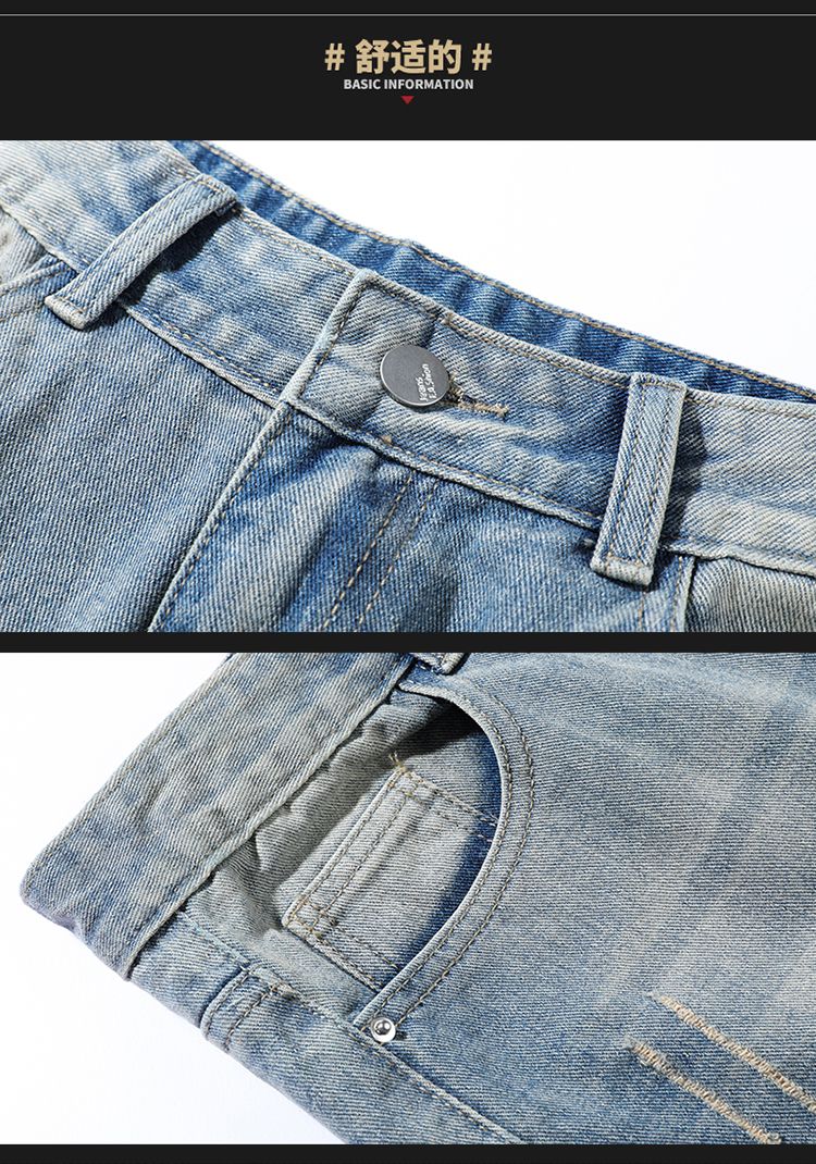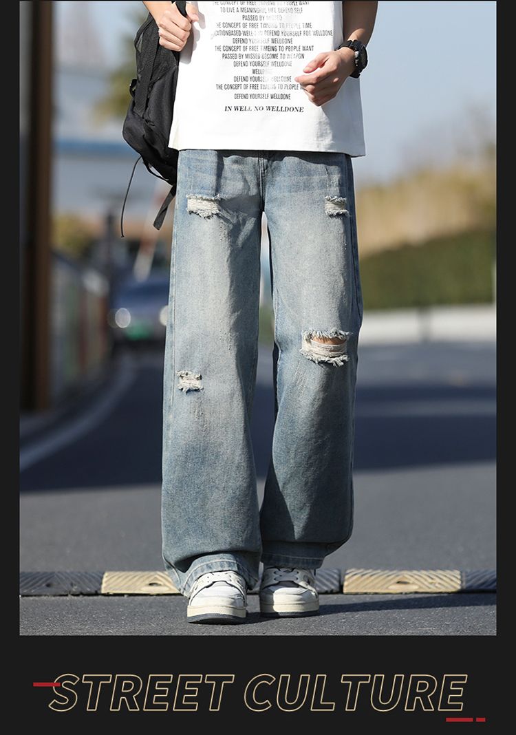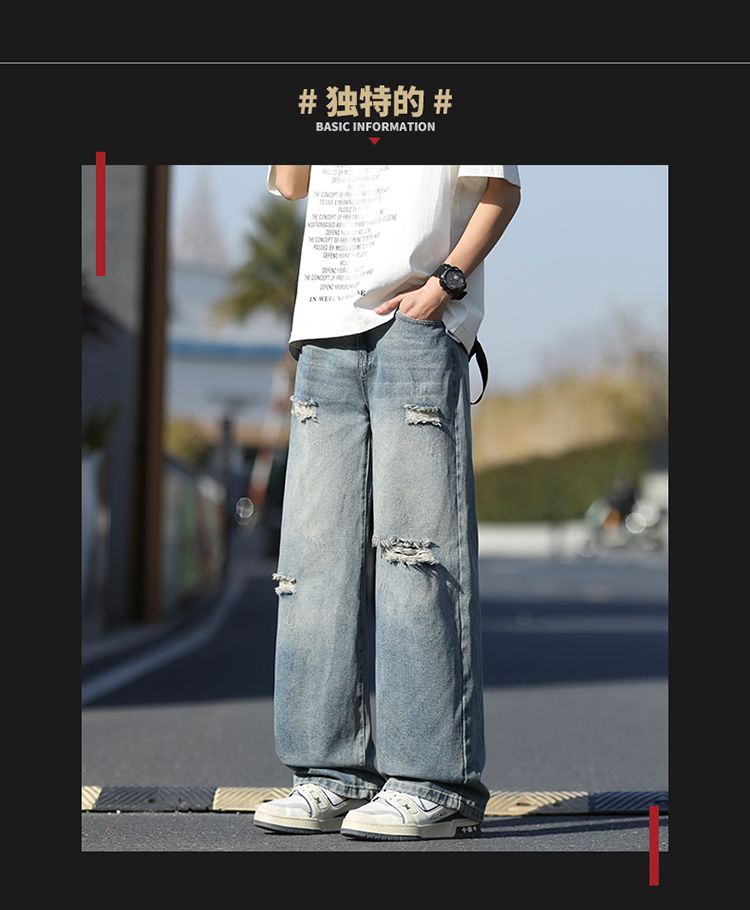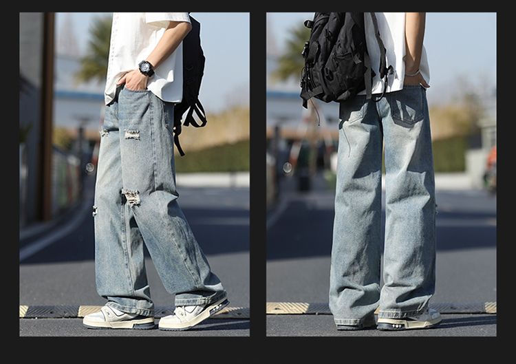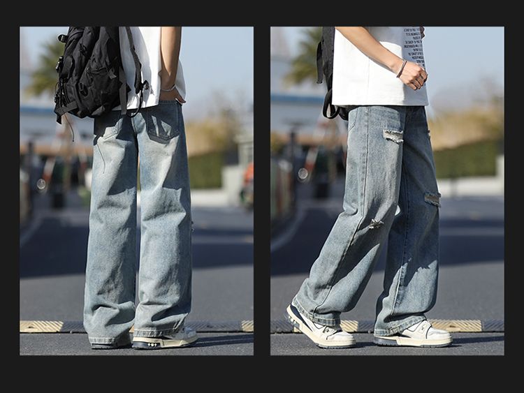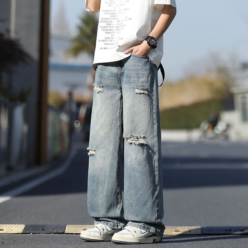 사계절 워시 물 바닥 청소 남성 청바지 레트로 항구 바람 루즈핏 스트레이트 트렌드 다용도 바지 파쇄 된 바지 긴 바지