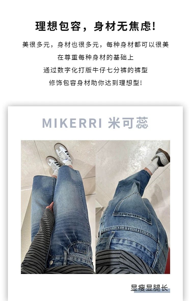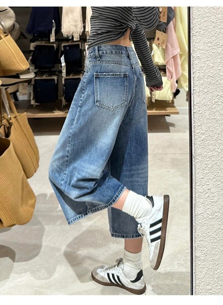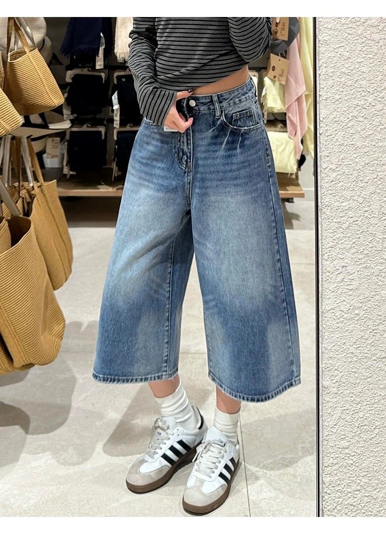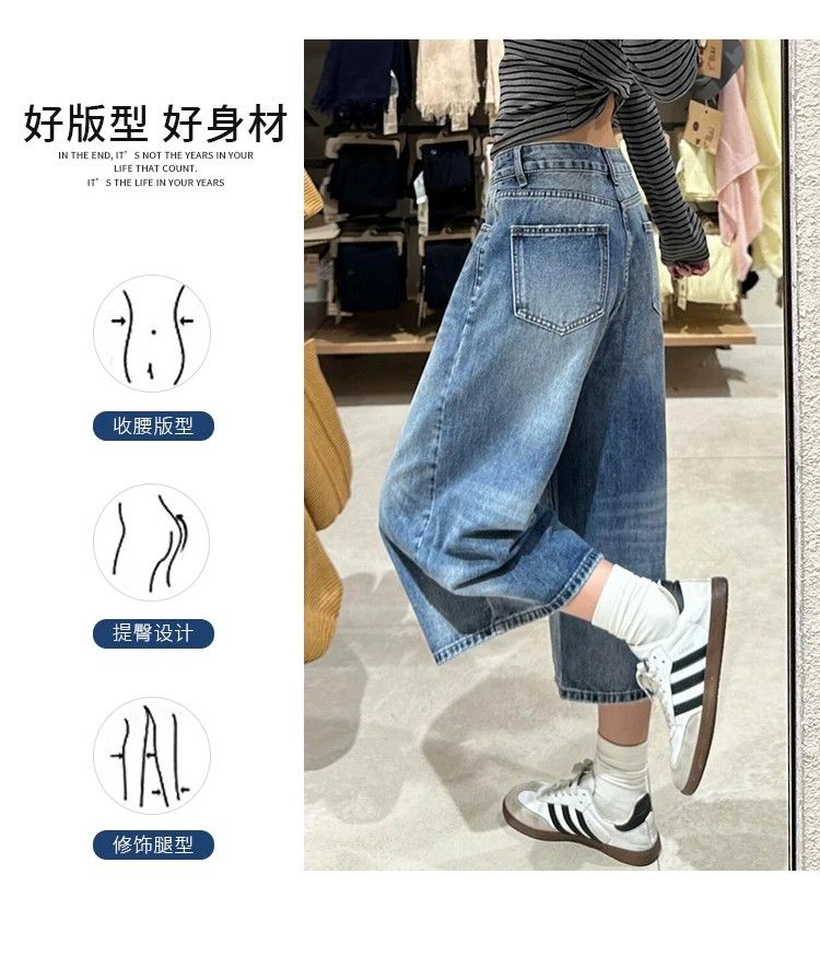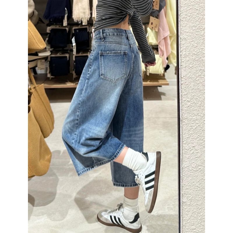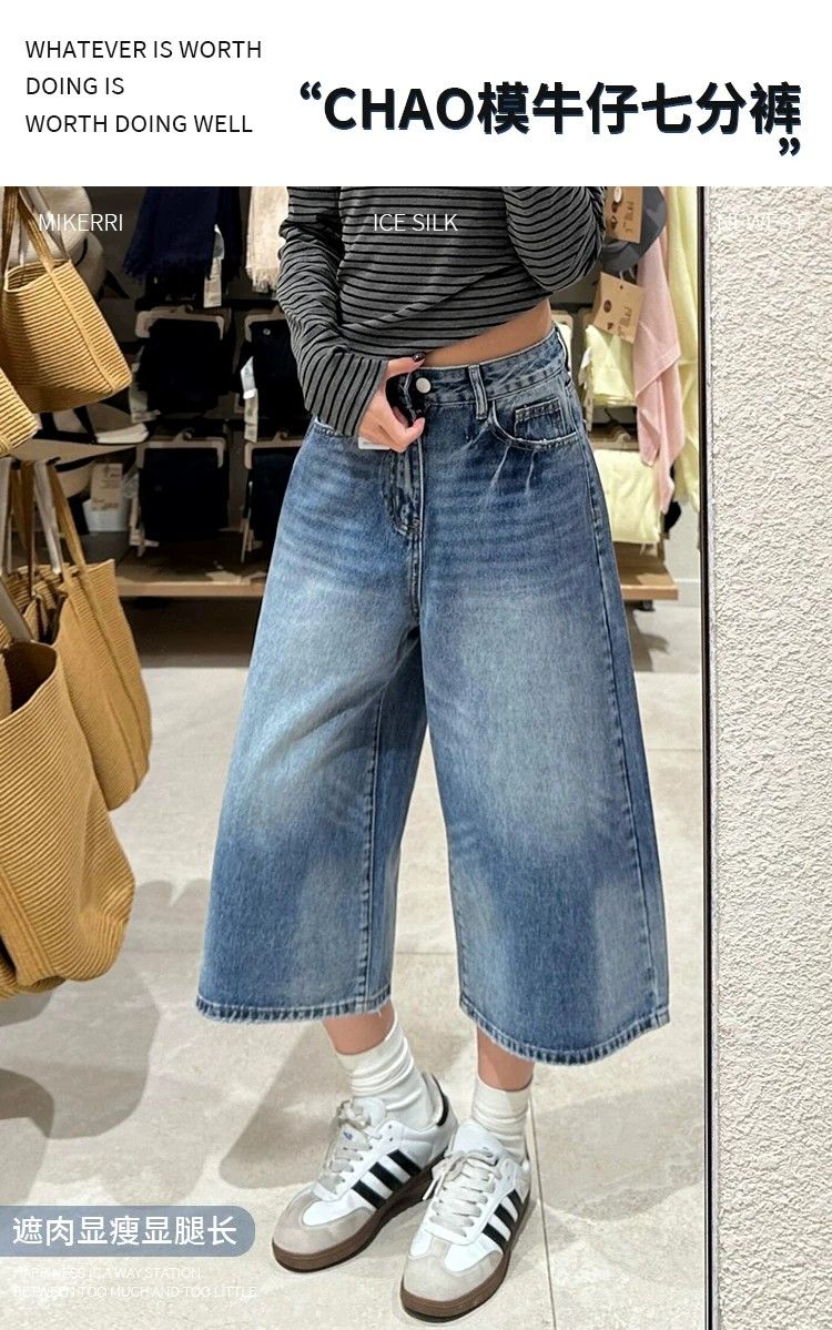 아메리칸 레트로 넓은 다리 데님 7부 바지 여성 여름 새로운 루즈핏 슬림해 보이는 배 종류 몸 스트레이트 중 바지 트렌디