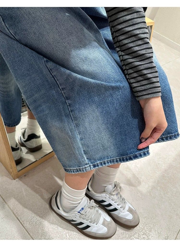 레트로 노스탤지어 워싱 루즈핏 청바지 여성 여름 하이웨이스트 다용도 하늘색 와이드 레그 팬츠 긴 바지 모통이 칼 바지