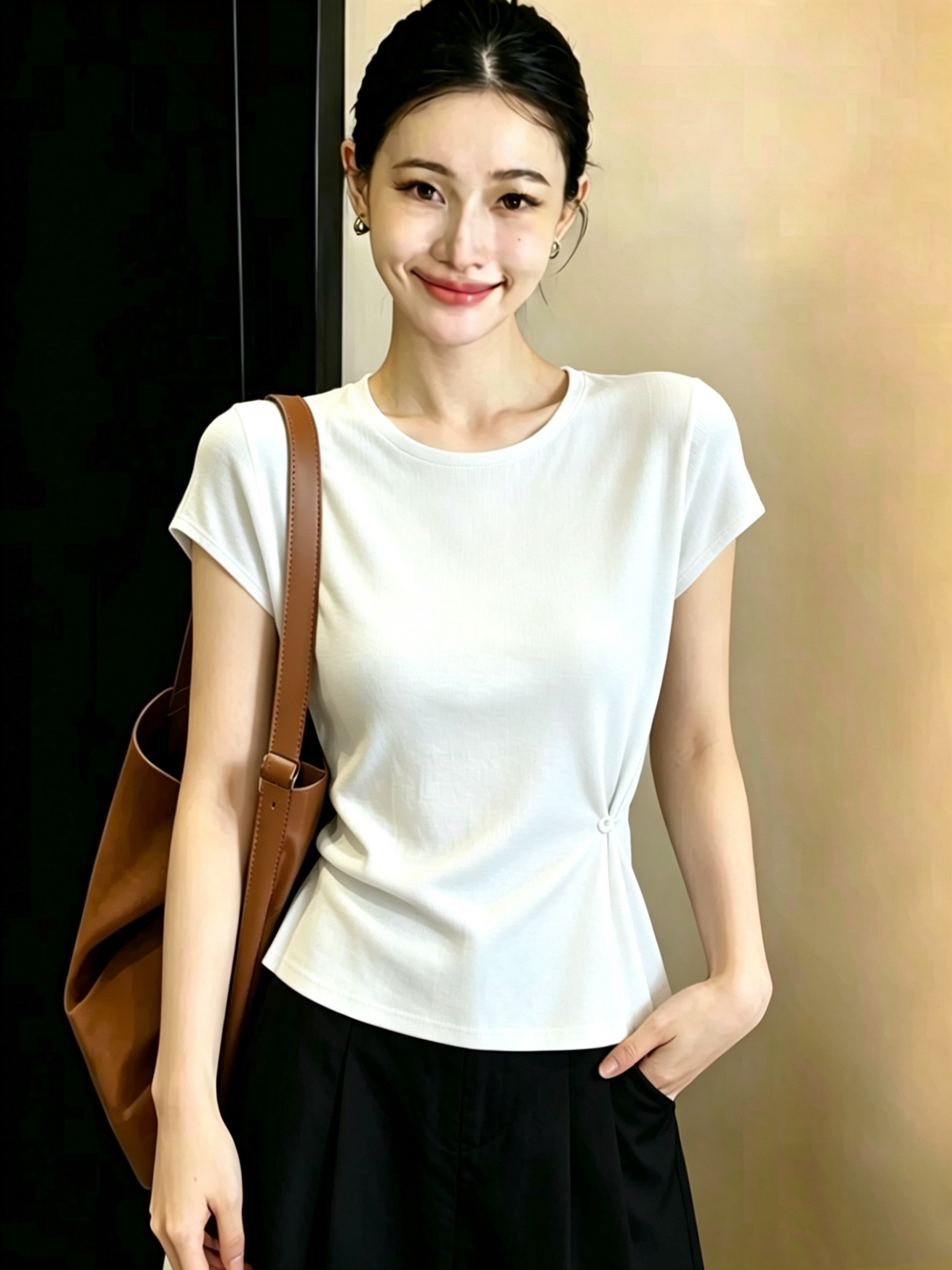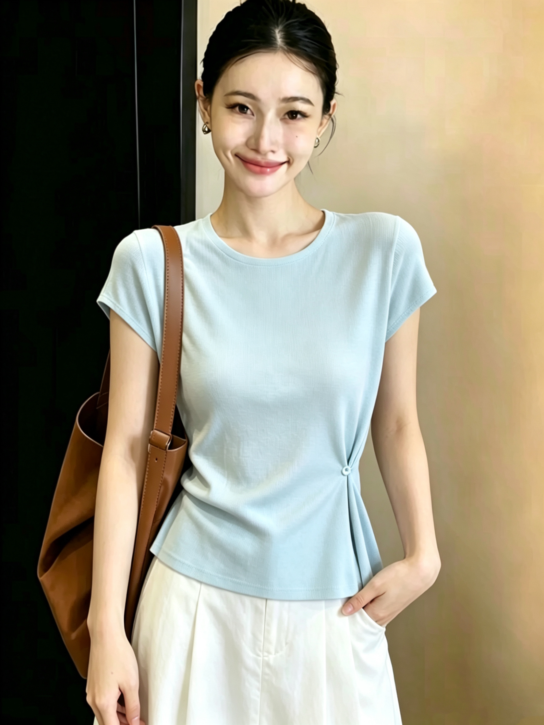 재고 있음 2026 여름 새로운 반팔 니트 스웨터 여성 꼬집기 허리 디자인 맨위