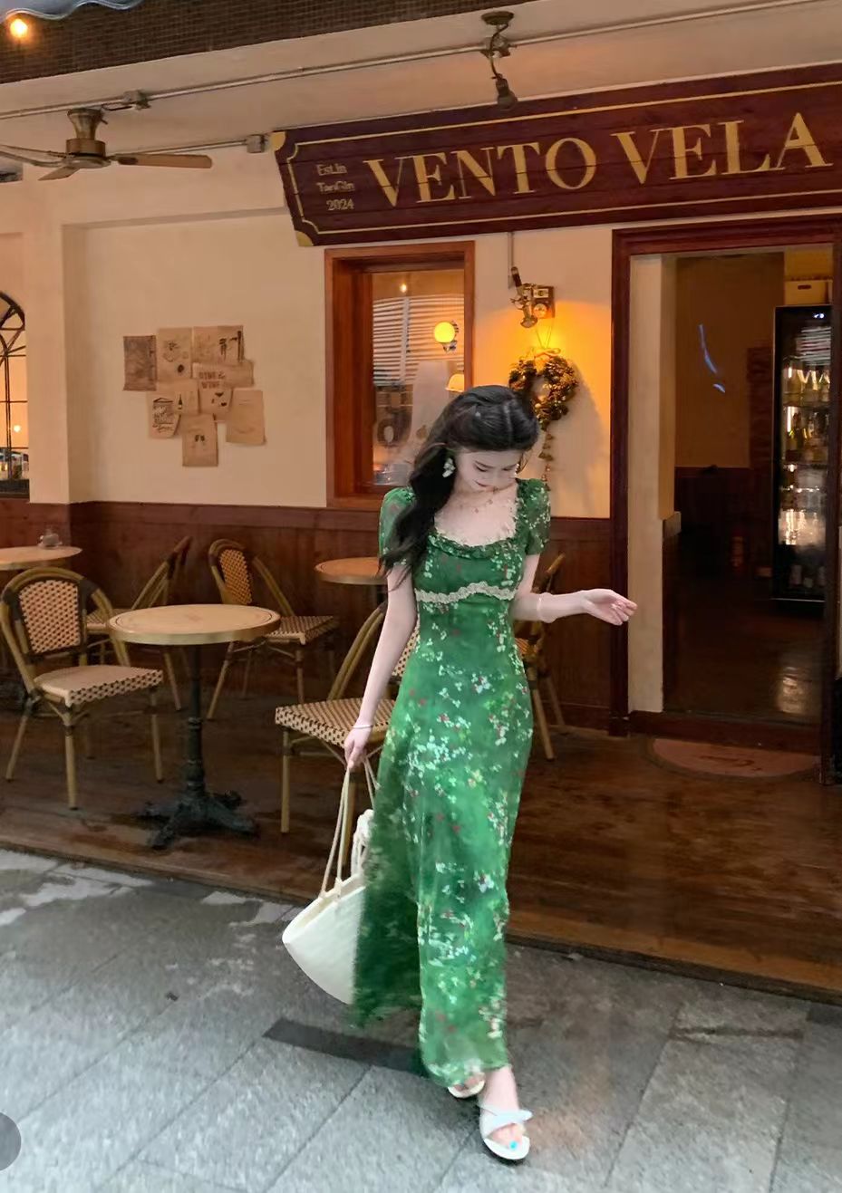 루이 茜 웨이 Sher S 우우 우우 밀크 티 봄 여름 달콤함 천 금빛 바람 중국 스타일 의류 드레스 r66610h