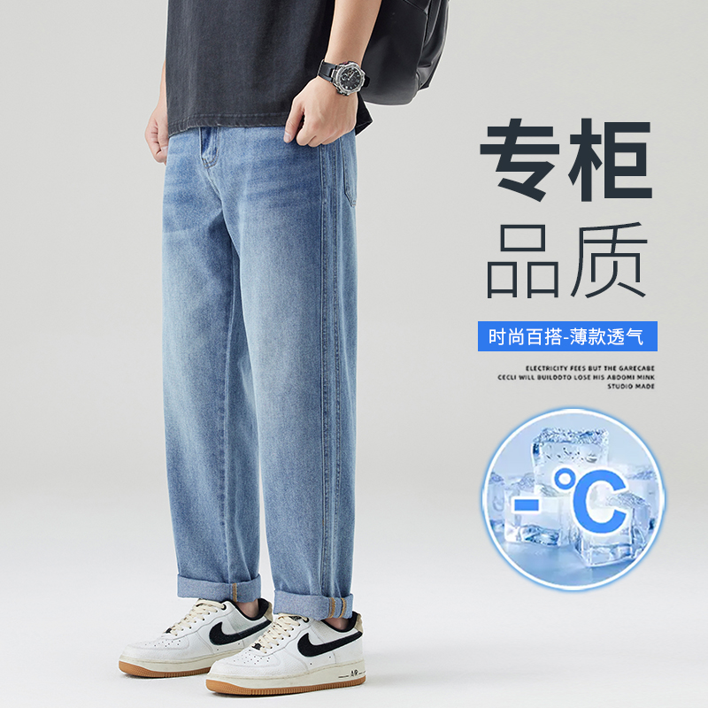 주간 실크 청바지 남성 2026 새로운 조수 브랜드 여름 얇은 스타일 루즈핏 스트레이트 마이크로 원추형 캐주얼 긴 바지