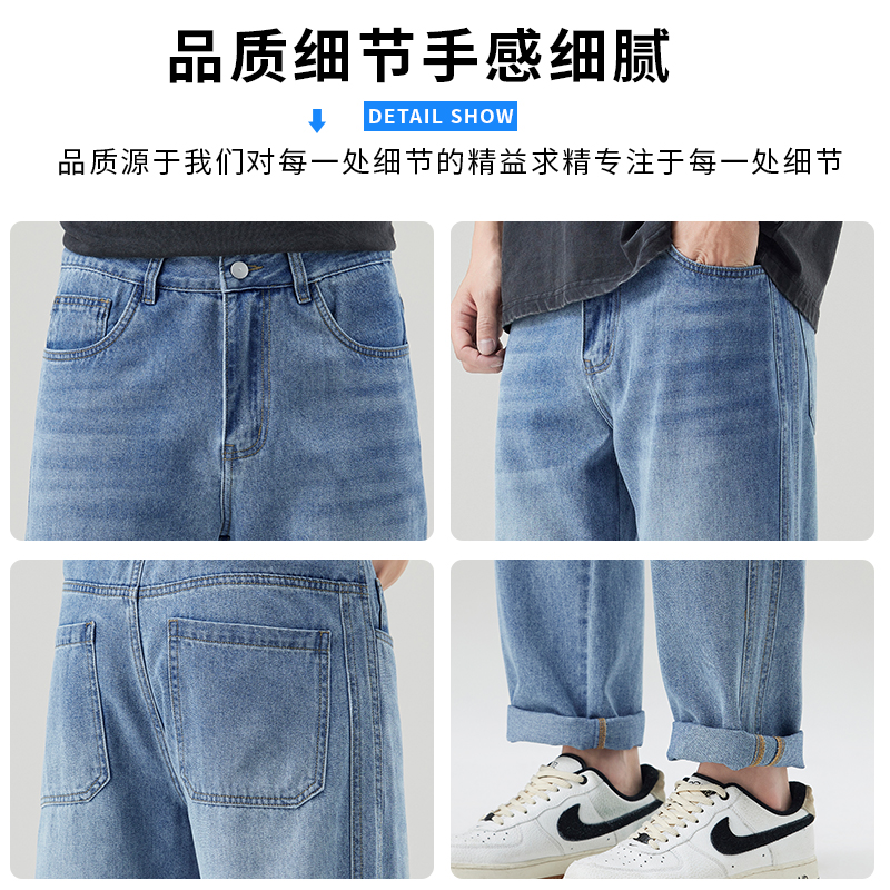 남성 레트로 데님 반바지 스트레이트 루즈핏 트렌드 캐주얼 오부 바지 여름 얇은 스타일 다용도 바지 인터넷 에디션