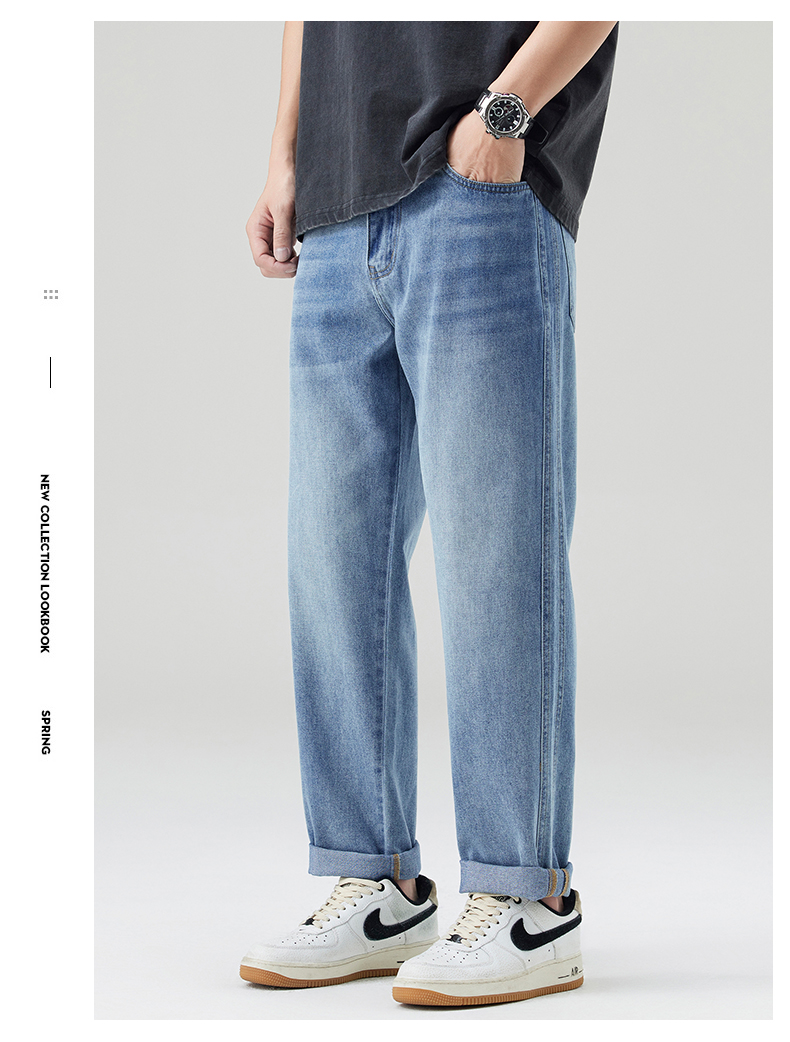 봄 여름 실크 청바지 아메리칸 청바지 남성 봄 여름 신제품 스트레이트 워싱 레트로 캐주얼 바지 남자