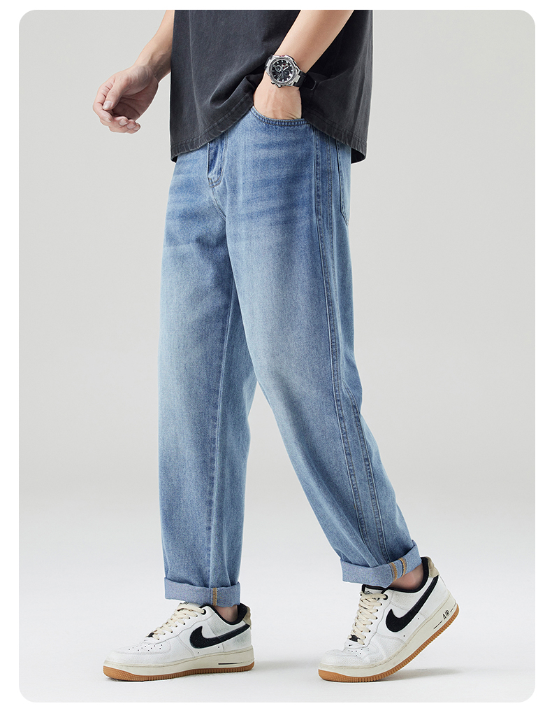 재 고 있 데님 7 점 소년 여름 새로운 스트레이트 일본식 조수 브랜드 레트로 잘 생긴 다용도 미니멀리즘 워시 물