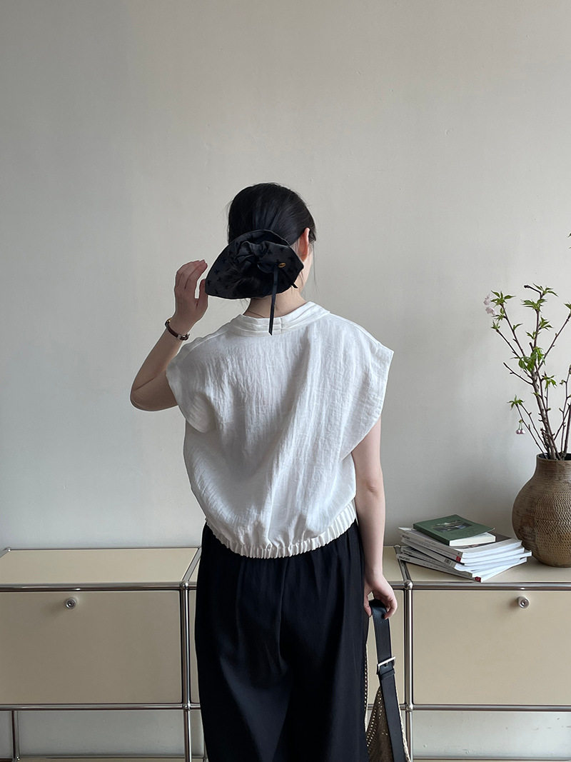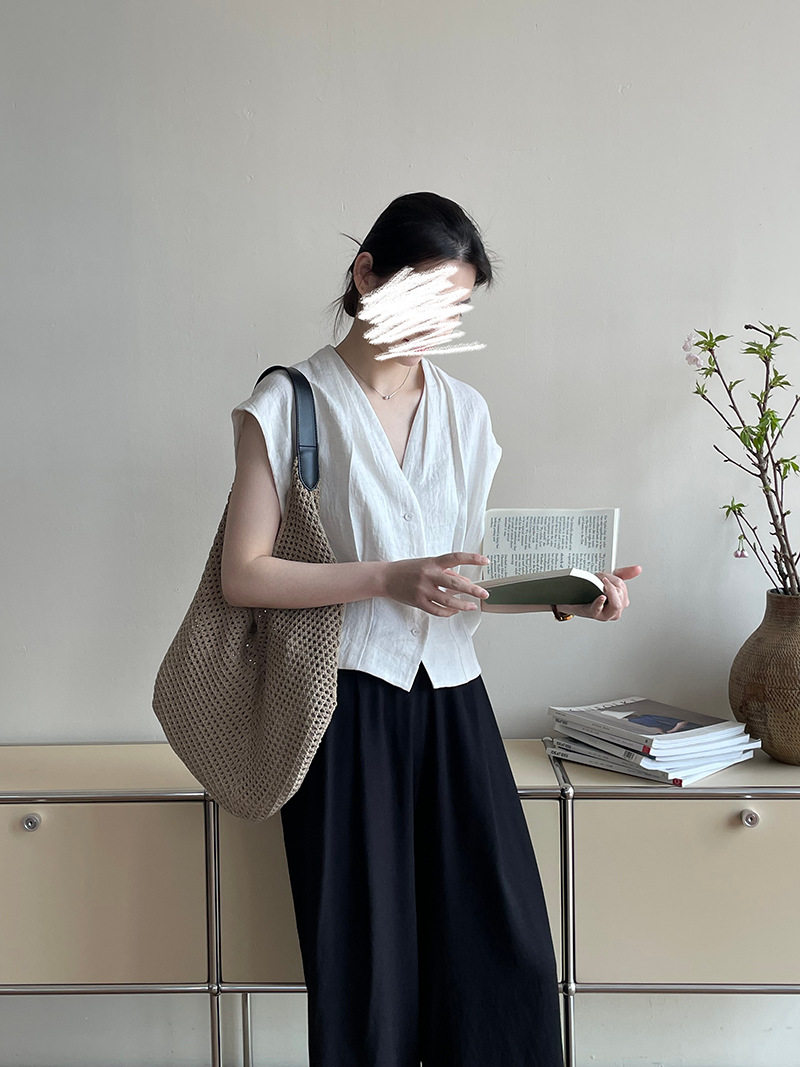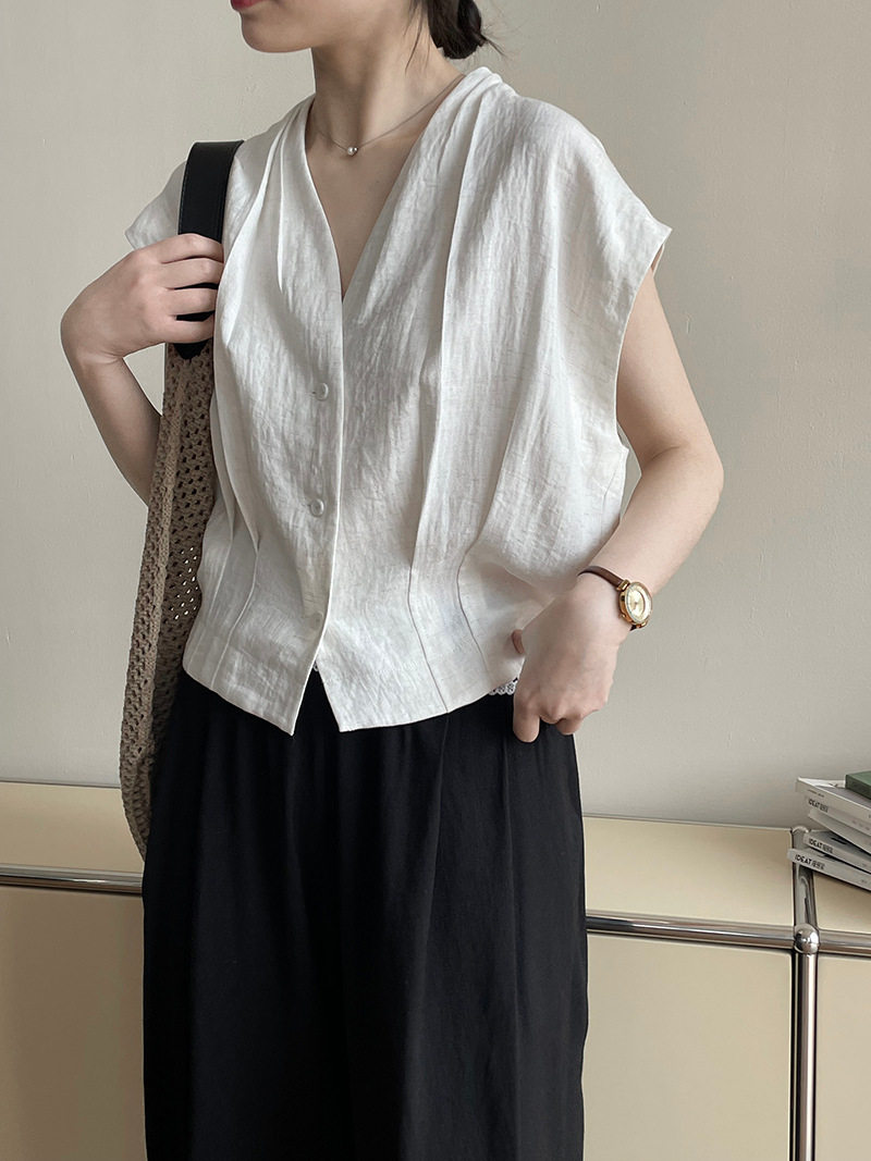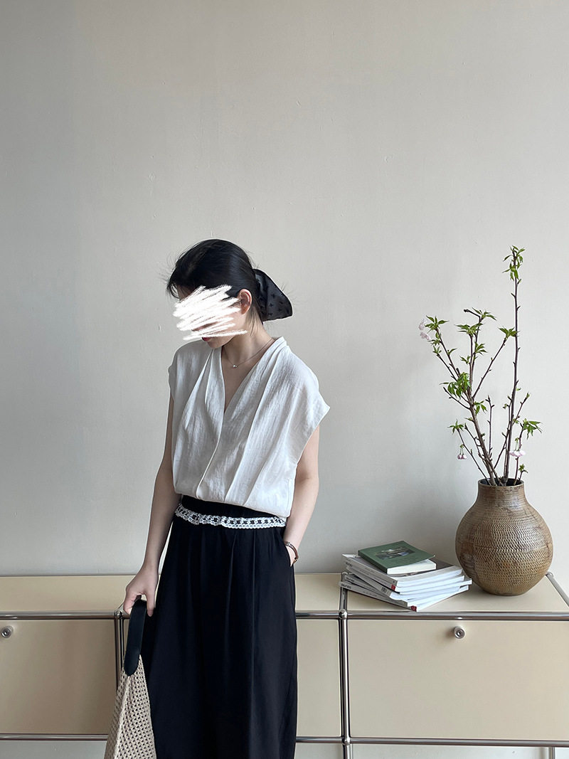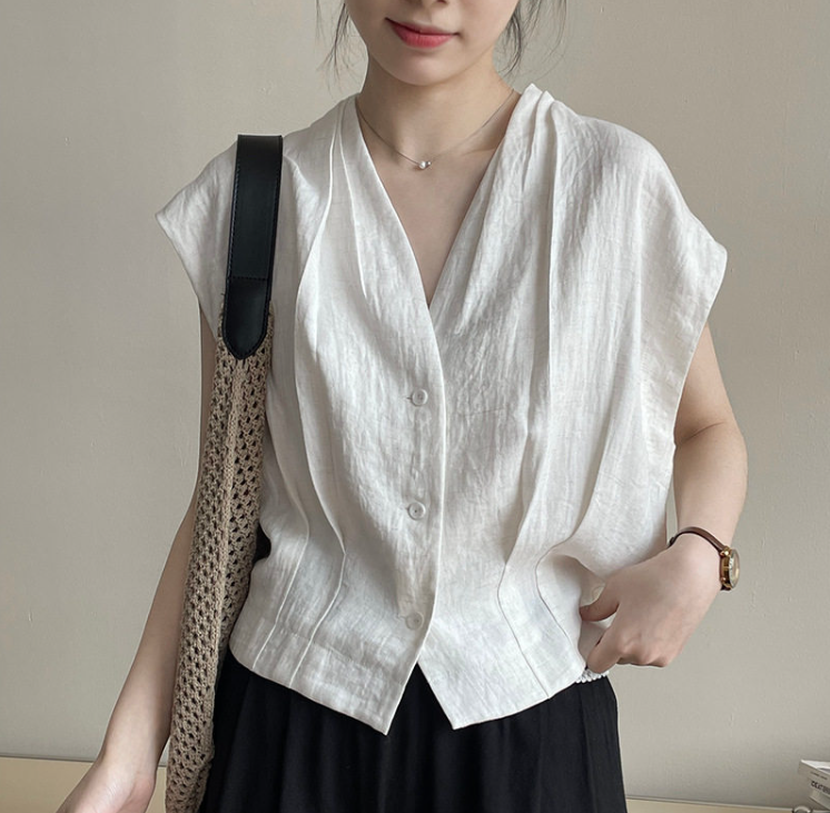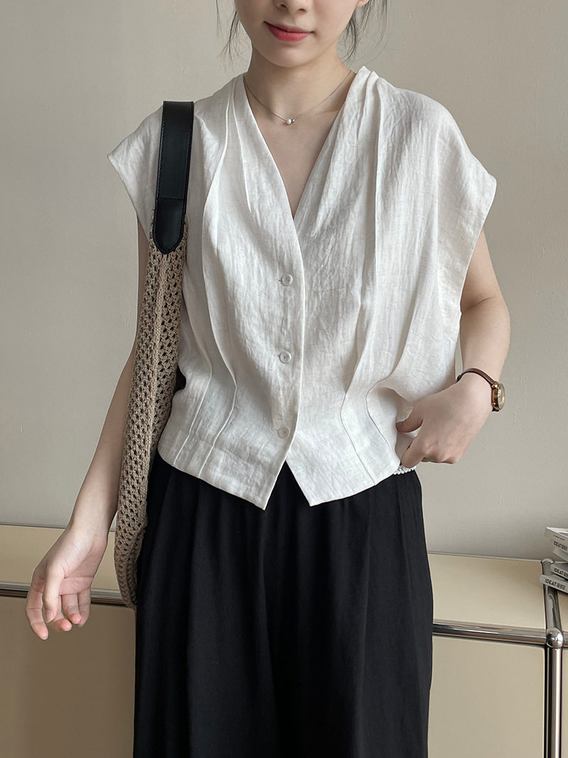 여름 드레스 고급 센스 화이트 라미 레이스 민소매 여성 셔츠 루즈핏 면 린넨 연령 감소 얇고 가벼운 아마 작은 셔츠