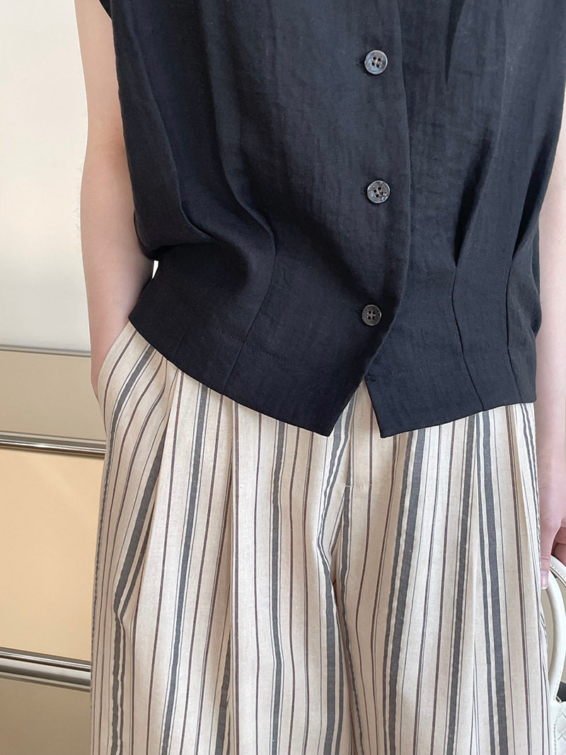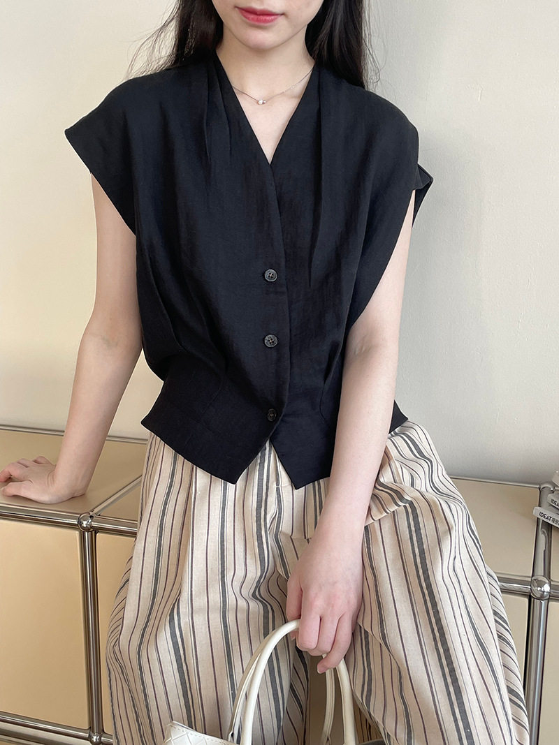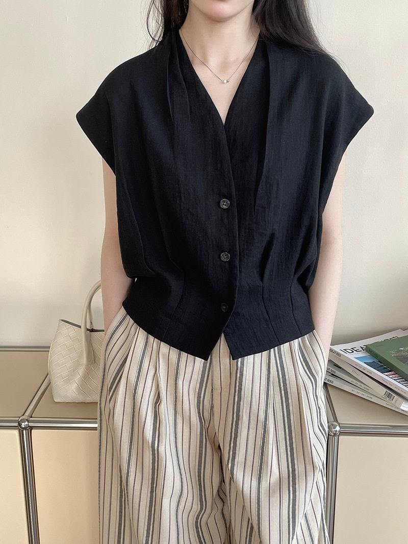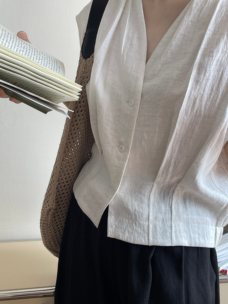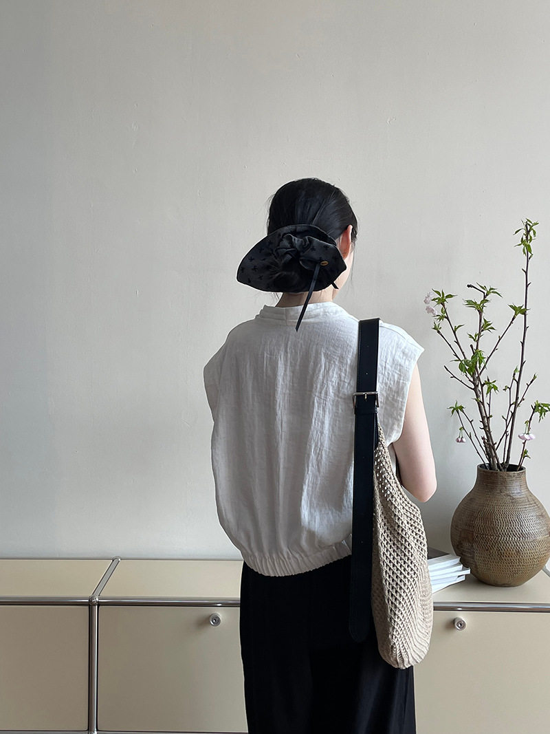 여름 드레스 고급 센스 화이트 라미 레이스 민소매 여성 셔츠 루즈핏 면 린넨 연령 감소 얇고 가벼운 아마 작은 셔츠