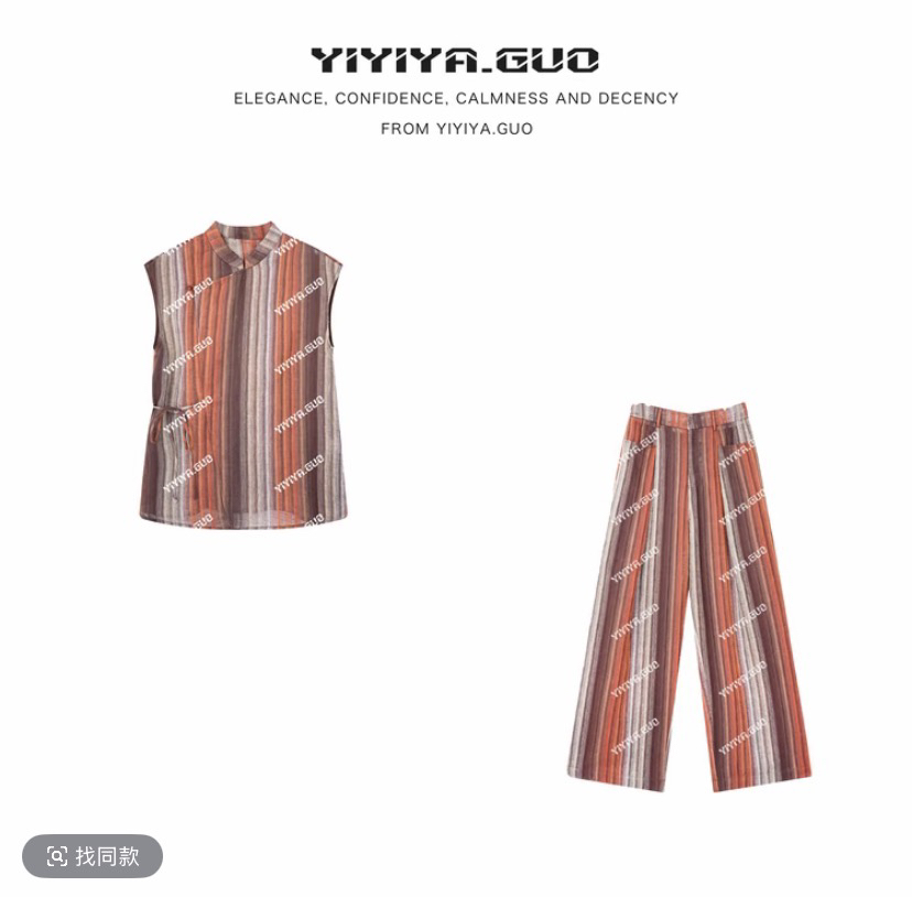yiyiya.guo 예술 예술 아 크리 딘 모네 갤러리 여름 레트로 다용도 베스트 바지 세트 16451ss5