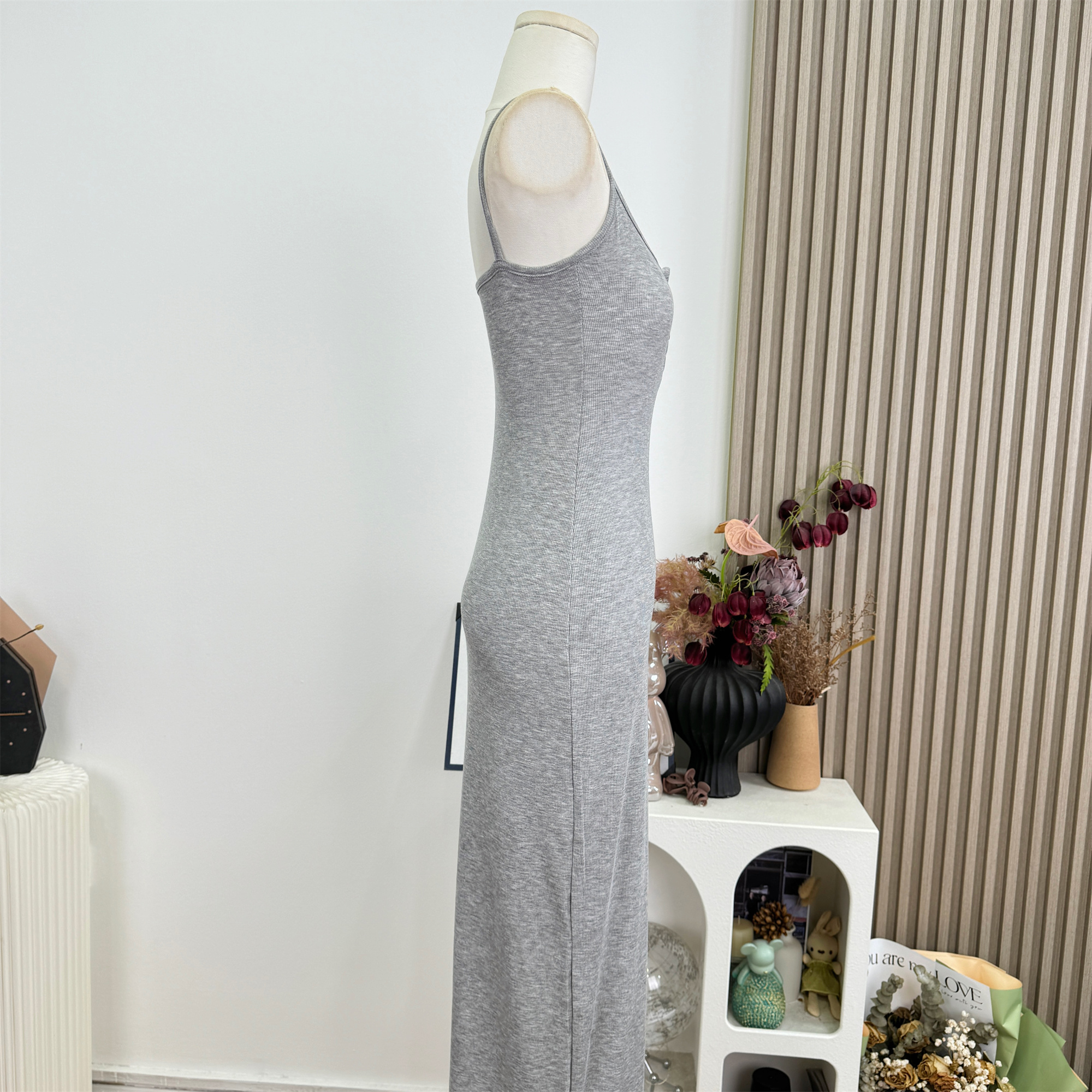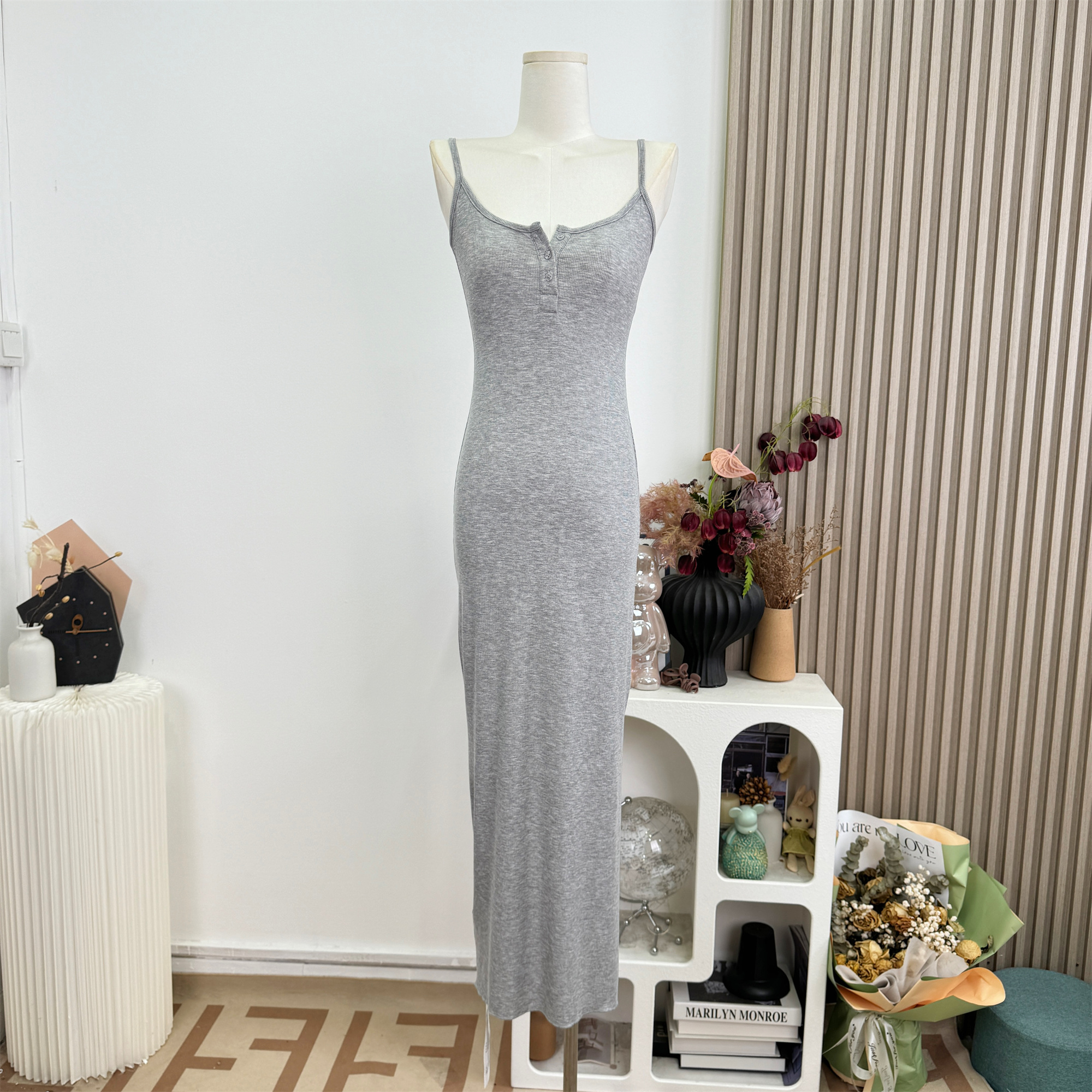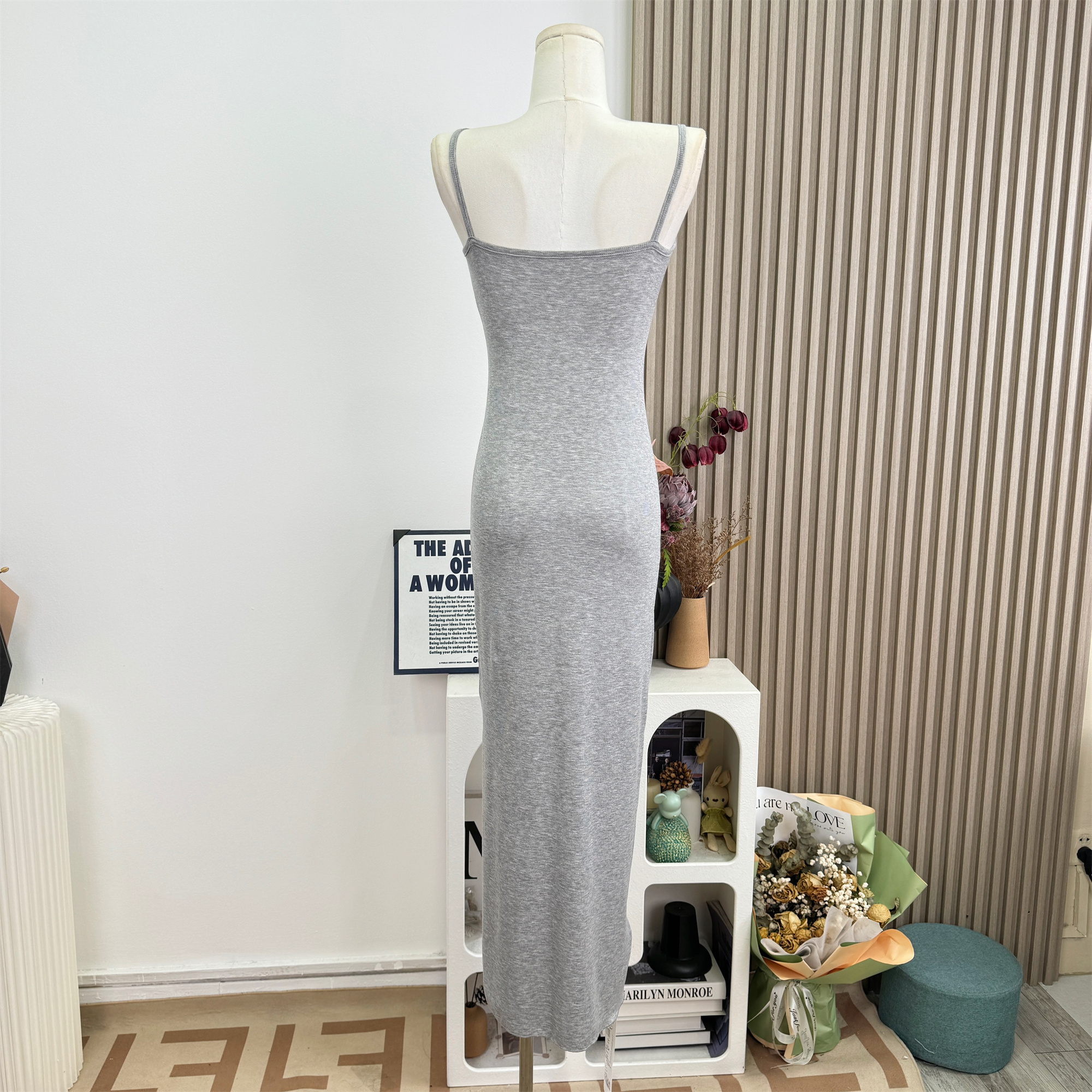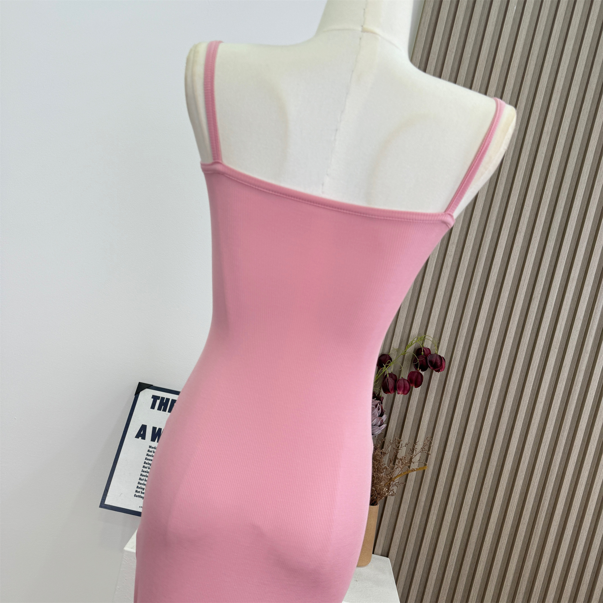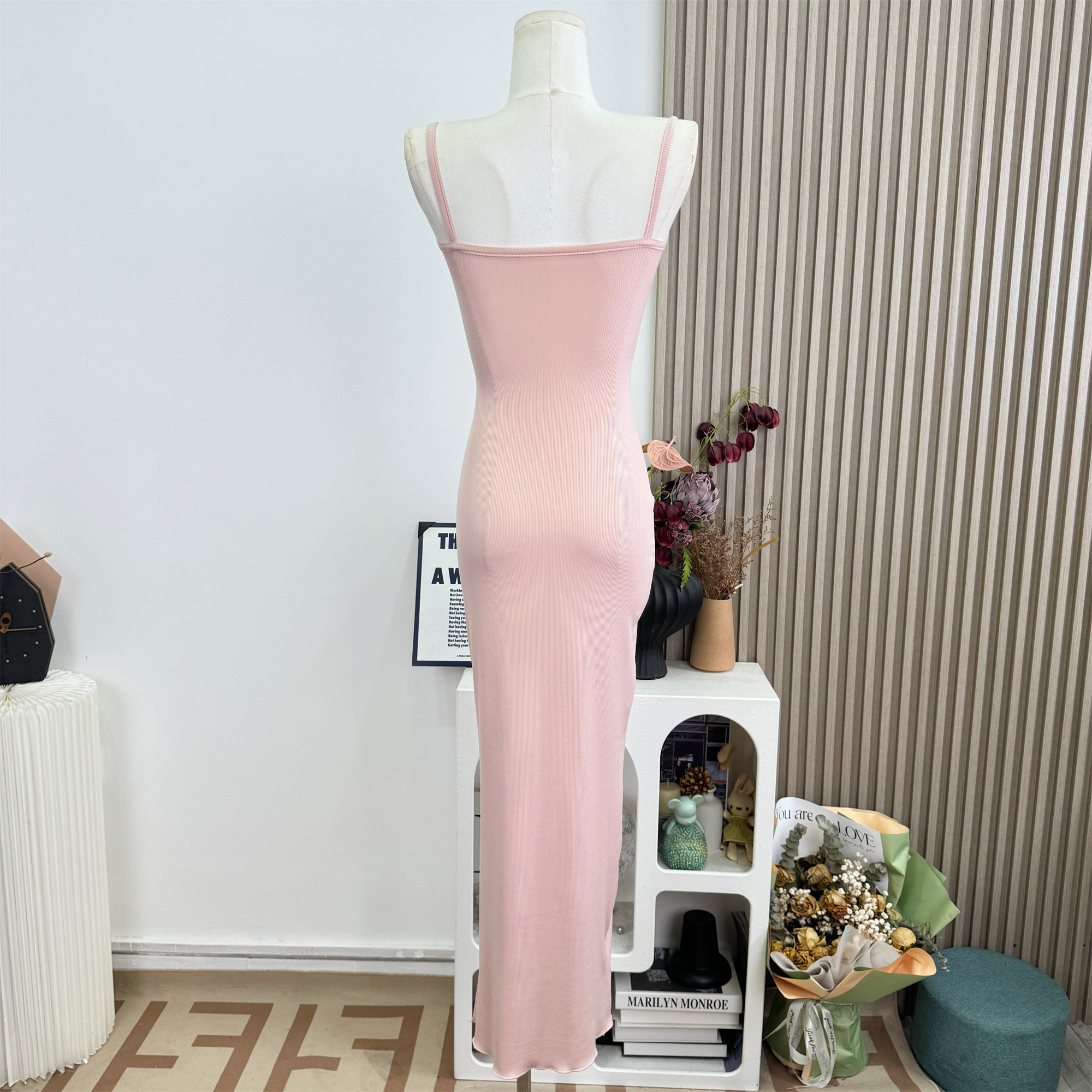 안녕하세요. 팬 팬 sunny girl 배색 끈 백리스 니트 원피스 샤오시엔 스트라이프 조끼