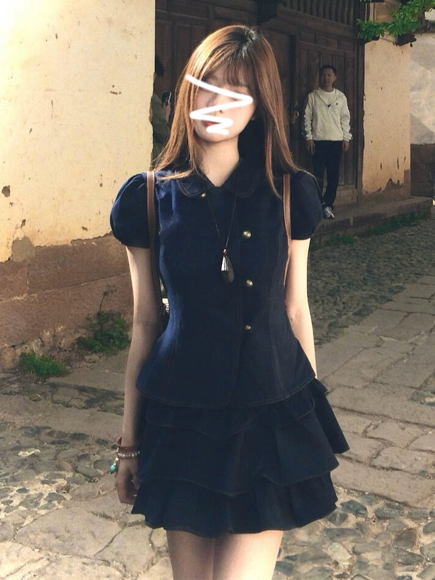 qdqd 달콤한 차가운 학원 스타일 세트 레트로 베이비 칼라 허리 수축 반팔 셔츠 소녀 센스 케이크 미니 스커트 여름