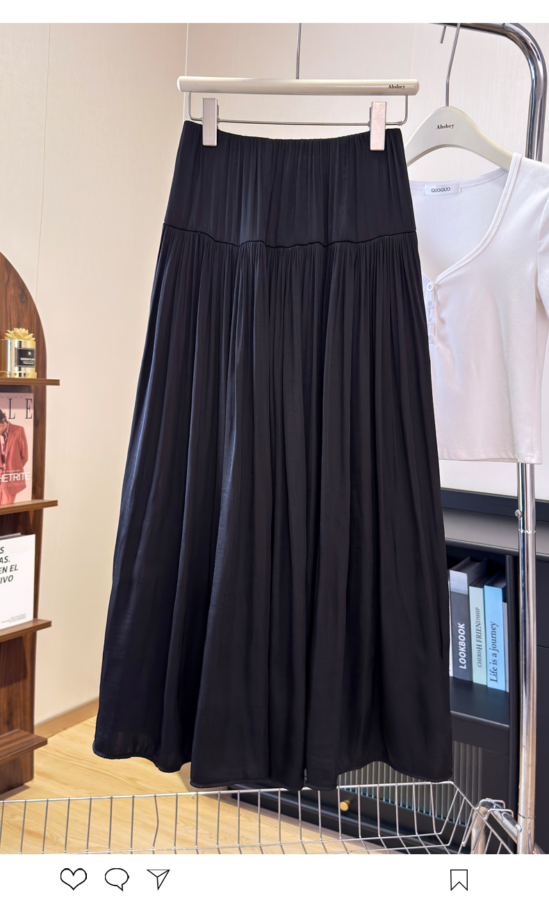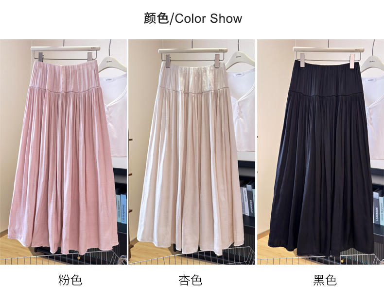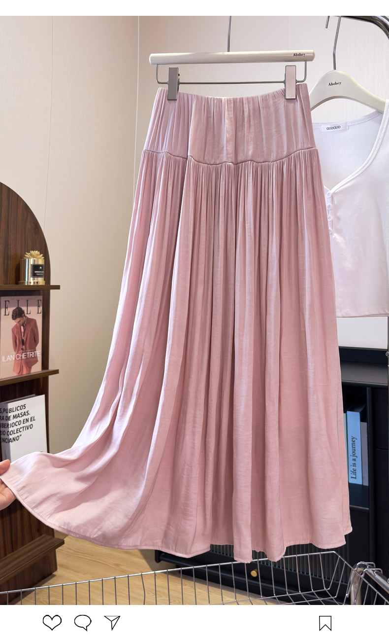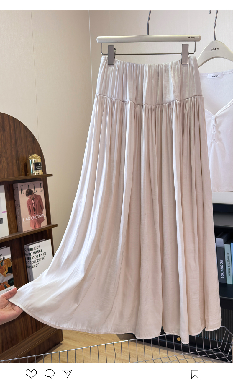 여름 새로운 광택 실 쉬폰 플리츠 스커트 캐주얼 레트로 반신 스커트 하이웨이스트 빅 플레어 스커트 품격 다용도 A라인 스커트