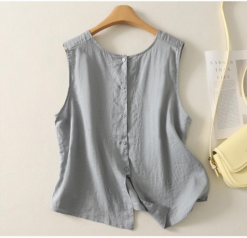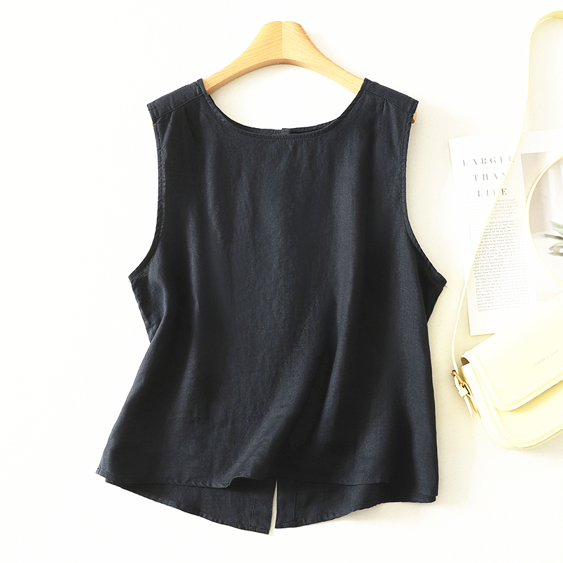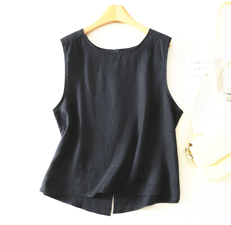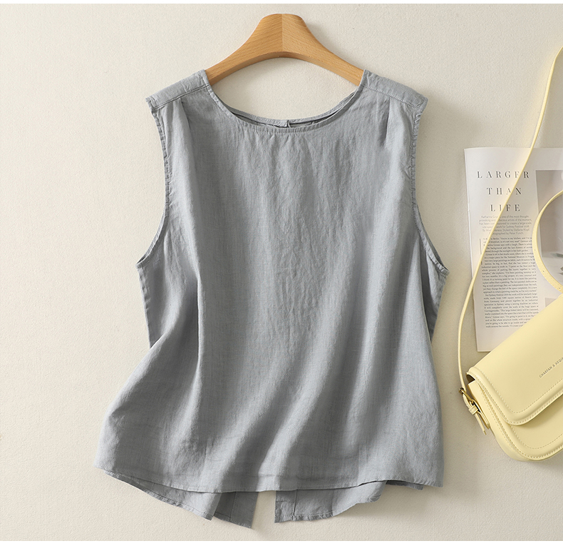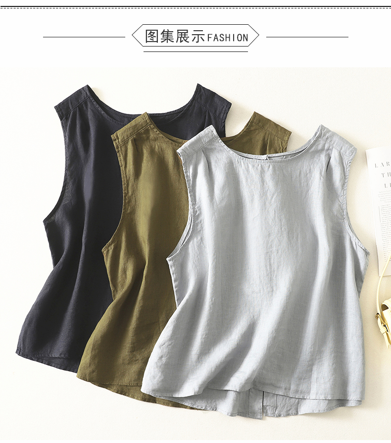 실사 2026 양면 착용 라운드 넥 민소매 면 린넨 셔츠 조끼 어깨 여성 여름 문예 캐주얼 다용도 맨위