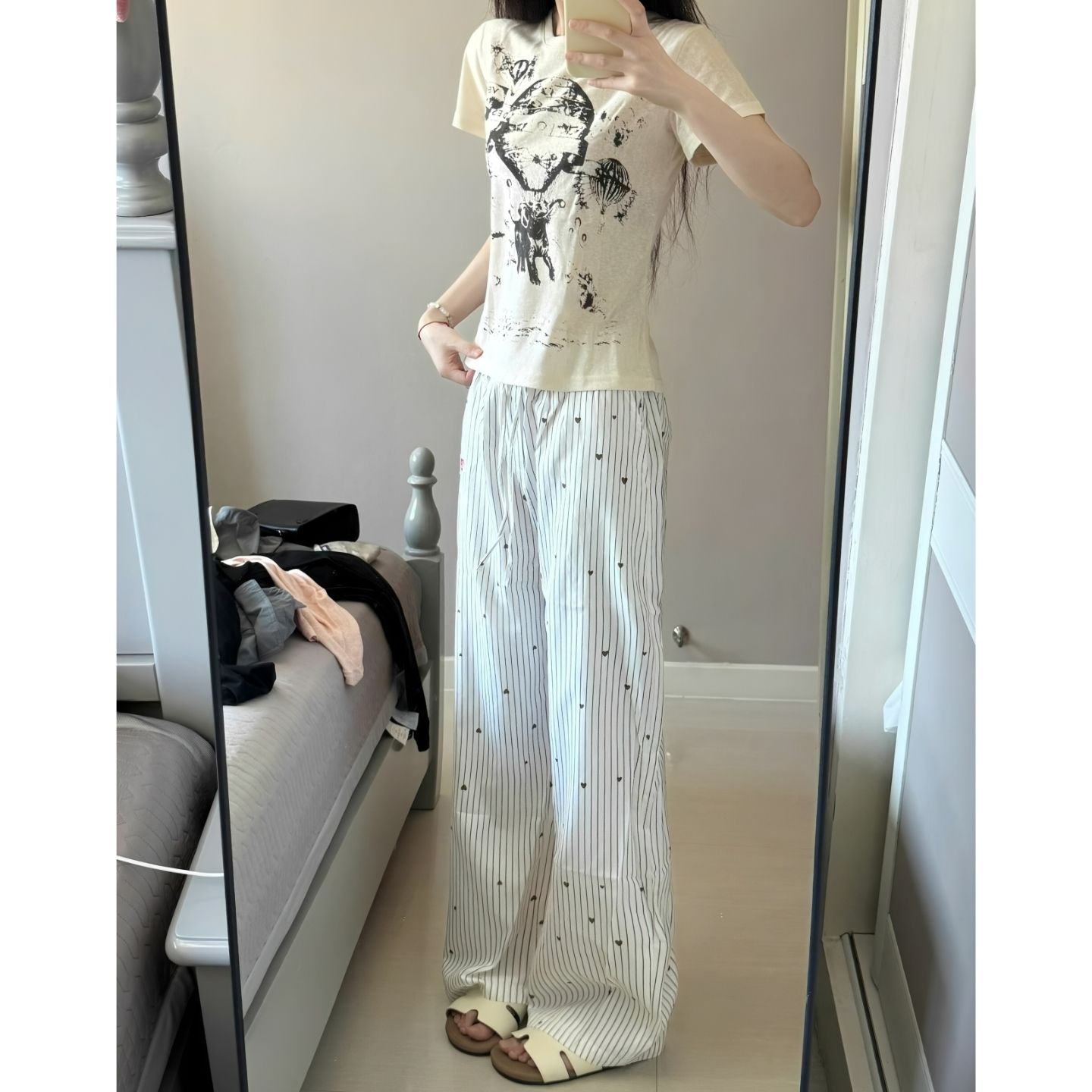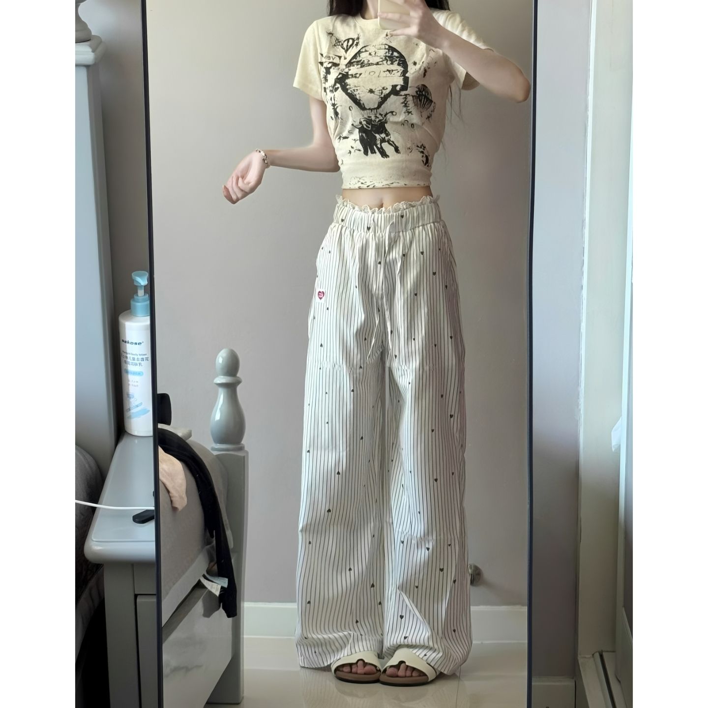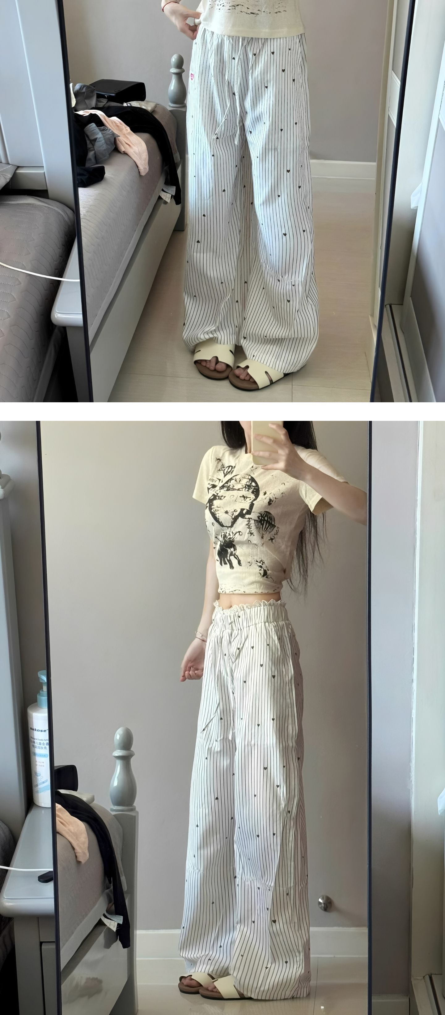 원본 원단 레이스 조각 스트라이프 와이드 레그 팬츠 여름 루즈핏 느긋한 바람 롱 바지 트렌디 ins