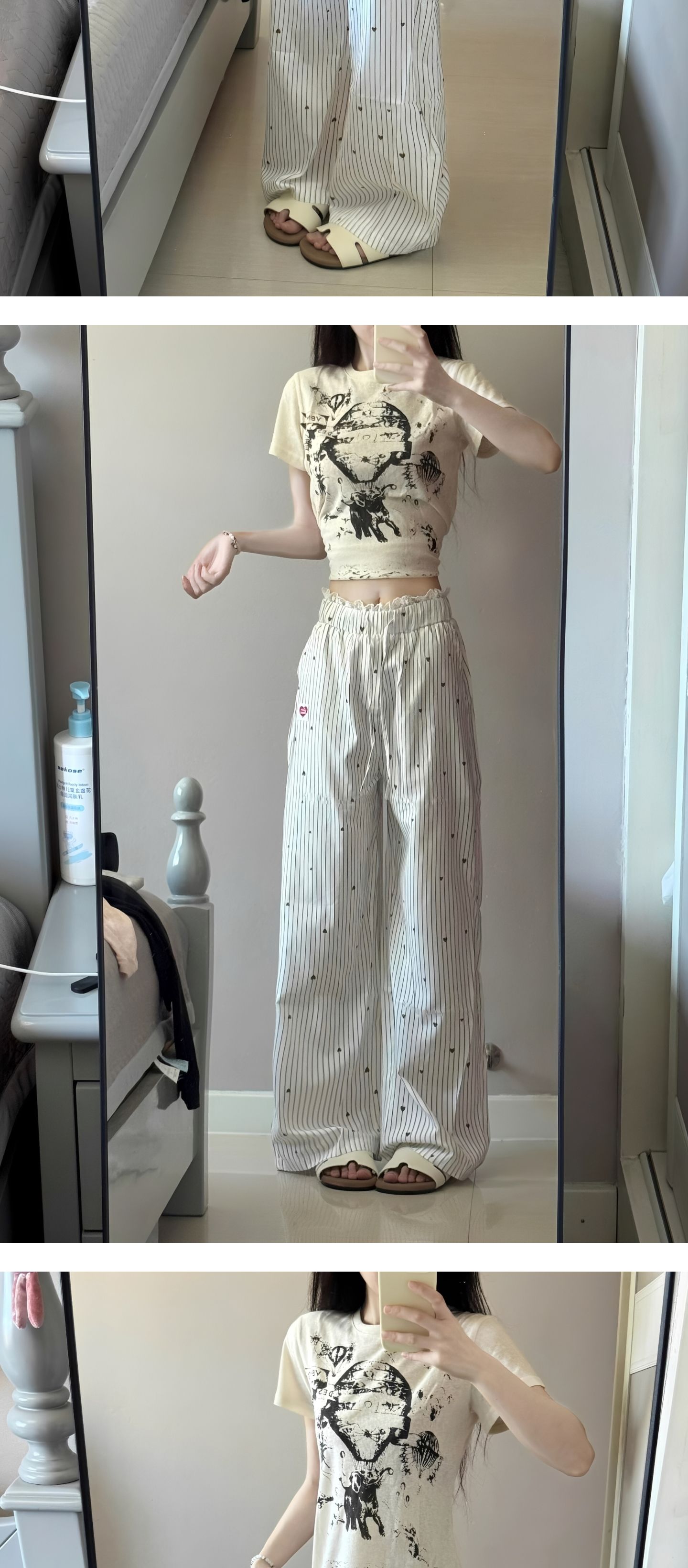 원본 원단 별 프린트 패치워크 반바지 여름 새로운 작은 키 넓은 다리 스트레이트 바지 트렌디
