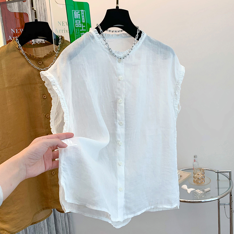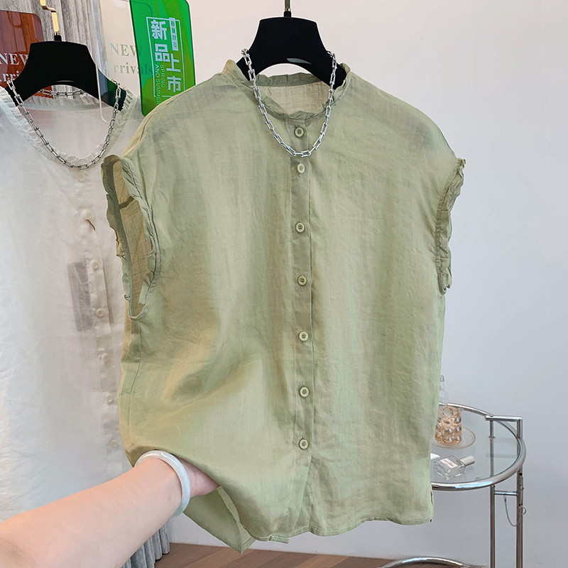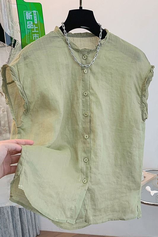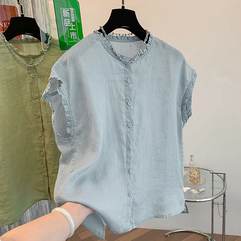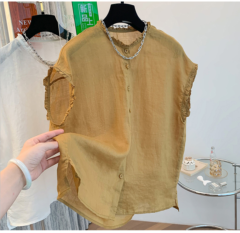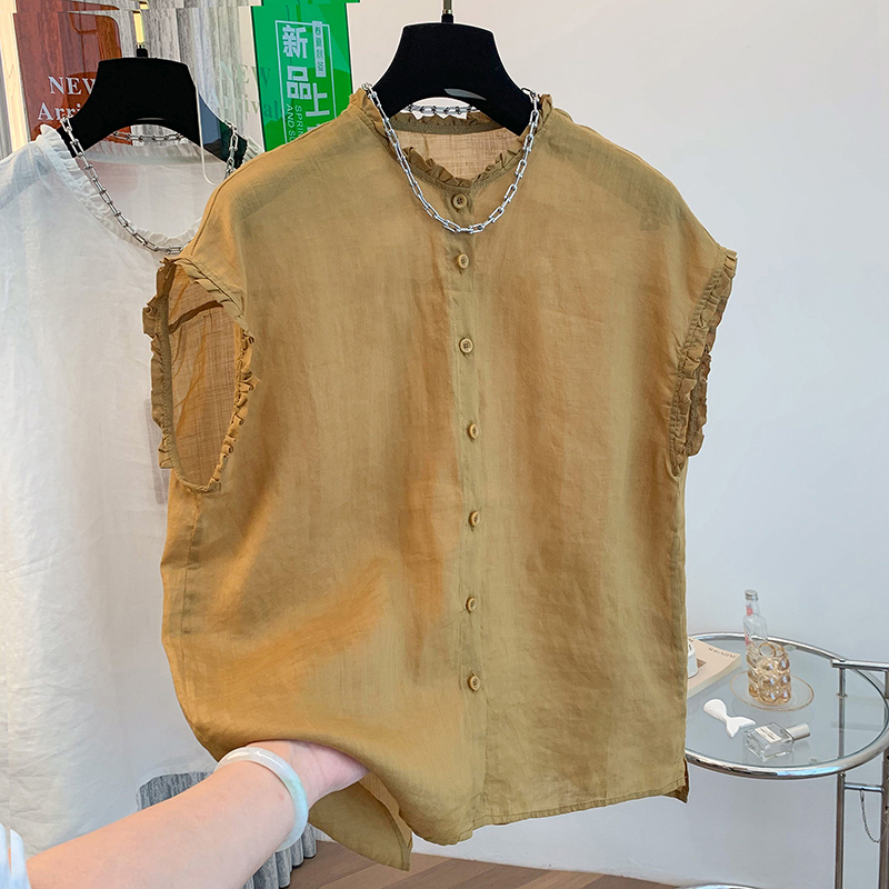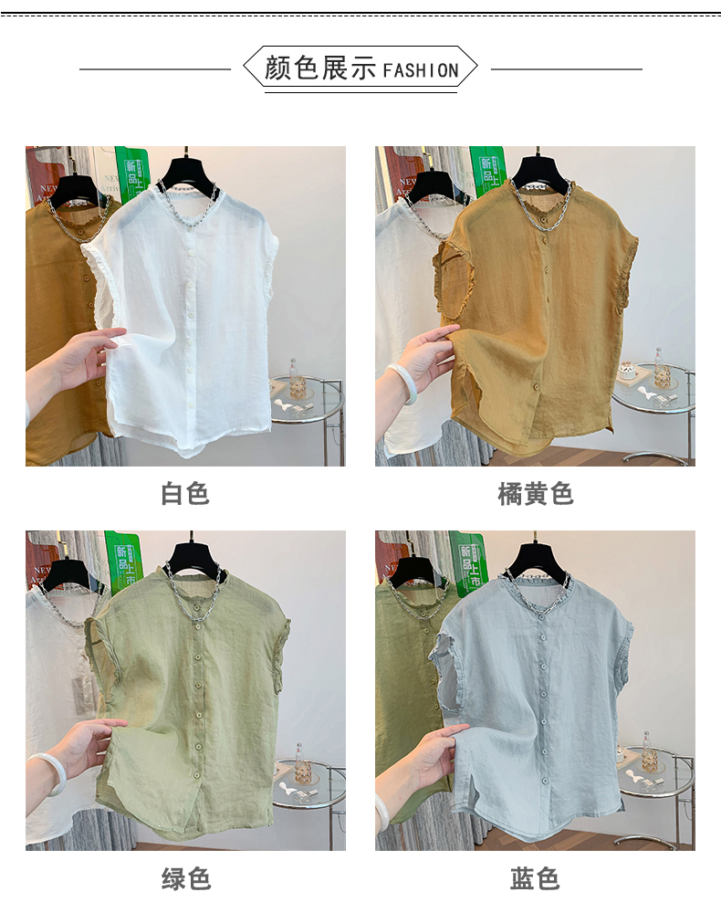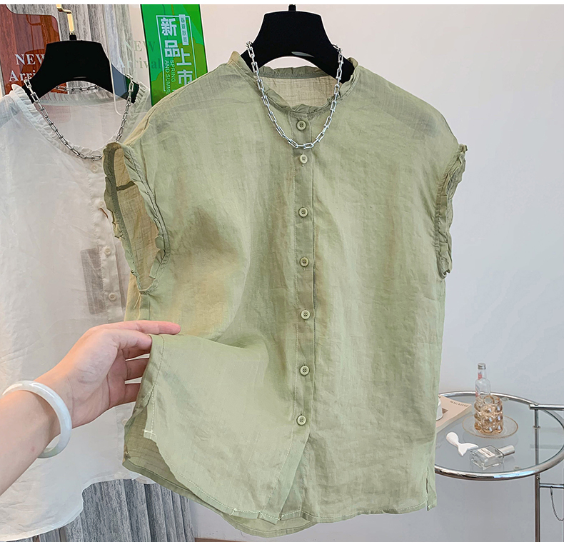 실사 2026 양면 착용 라운드 넥 민소매 면 린넨 셔츠 조끼 어깨 여성 여름 문예 캐주얼 다용도 맨위