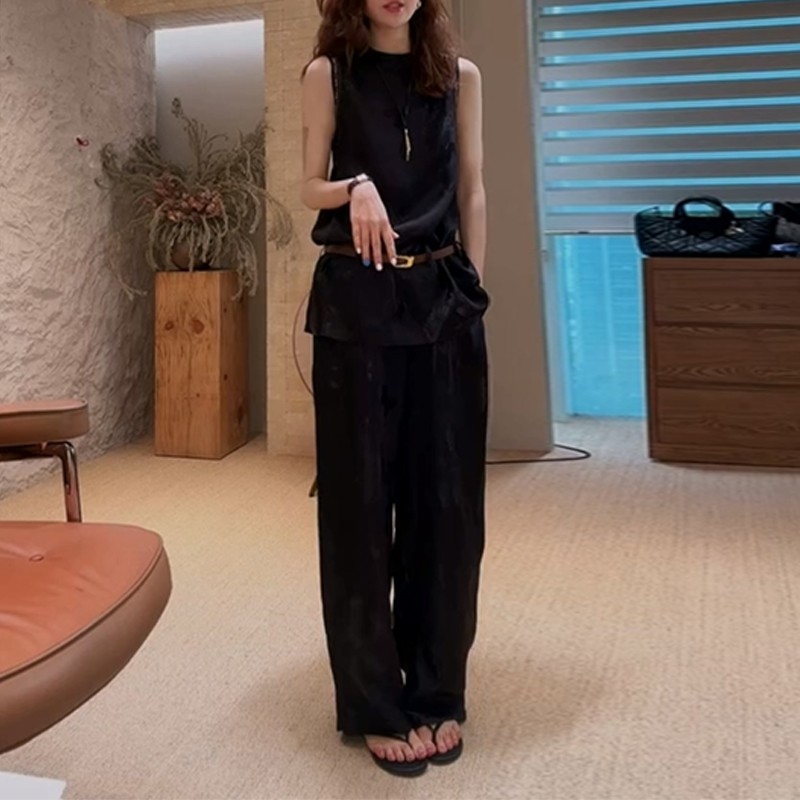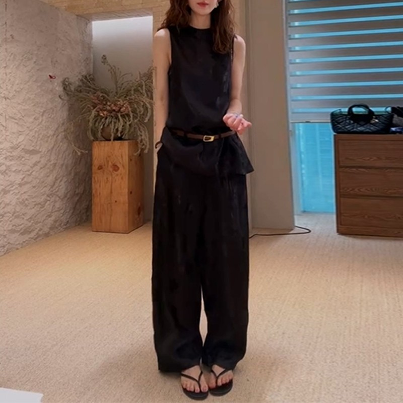 프랑스식 고급 센스 민소매 베스트 2026 넓은 다리가 짧다. 바지 세트 여성 여름 작은 키 출퇴근 패션 투피스 세트