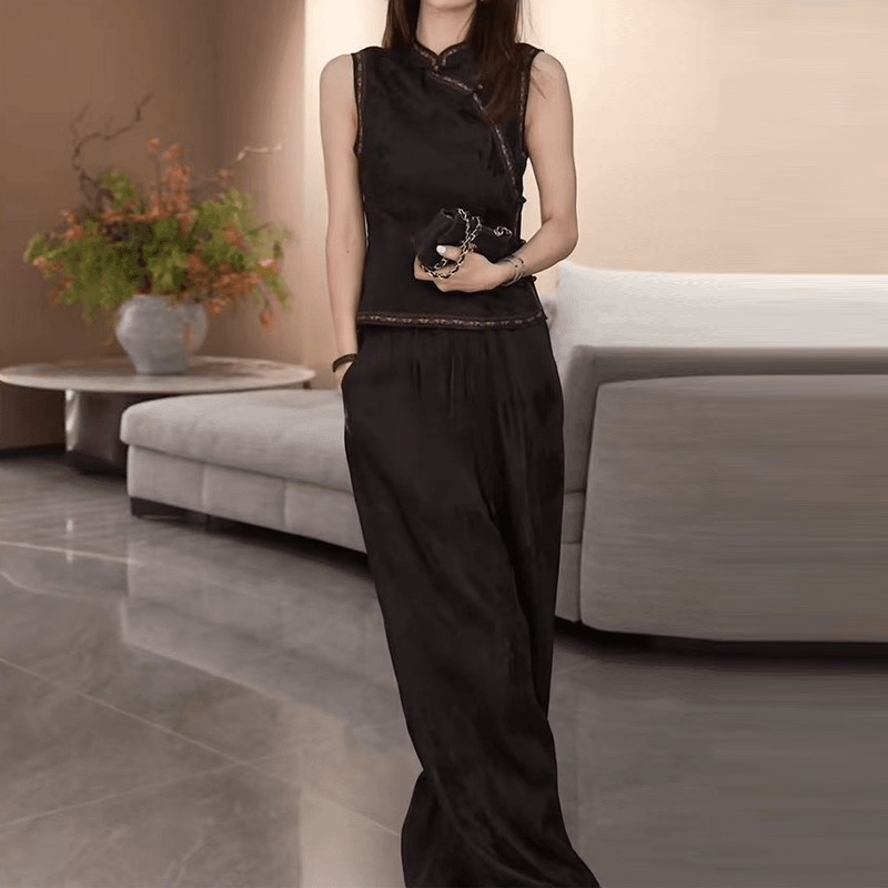 링 茜 거만한 와우 문폴 부드러운 실 국풍 새로운 중식 망사 베스트 품격 슬림해 보이는 분위기 센스 새틴 반신