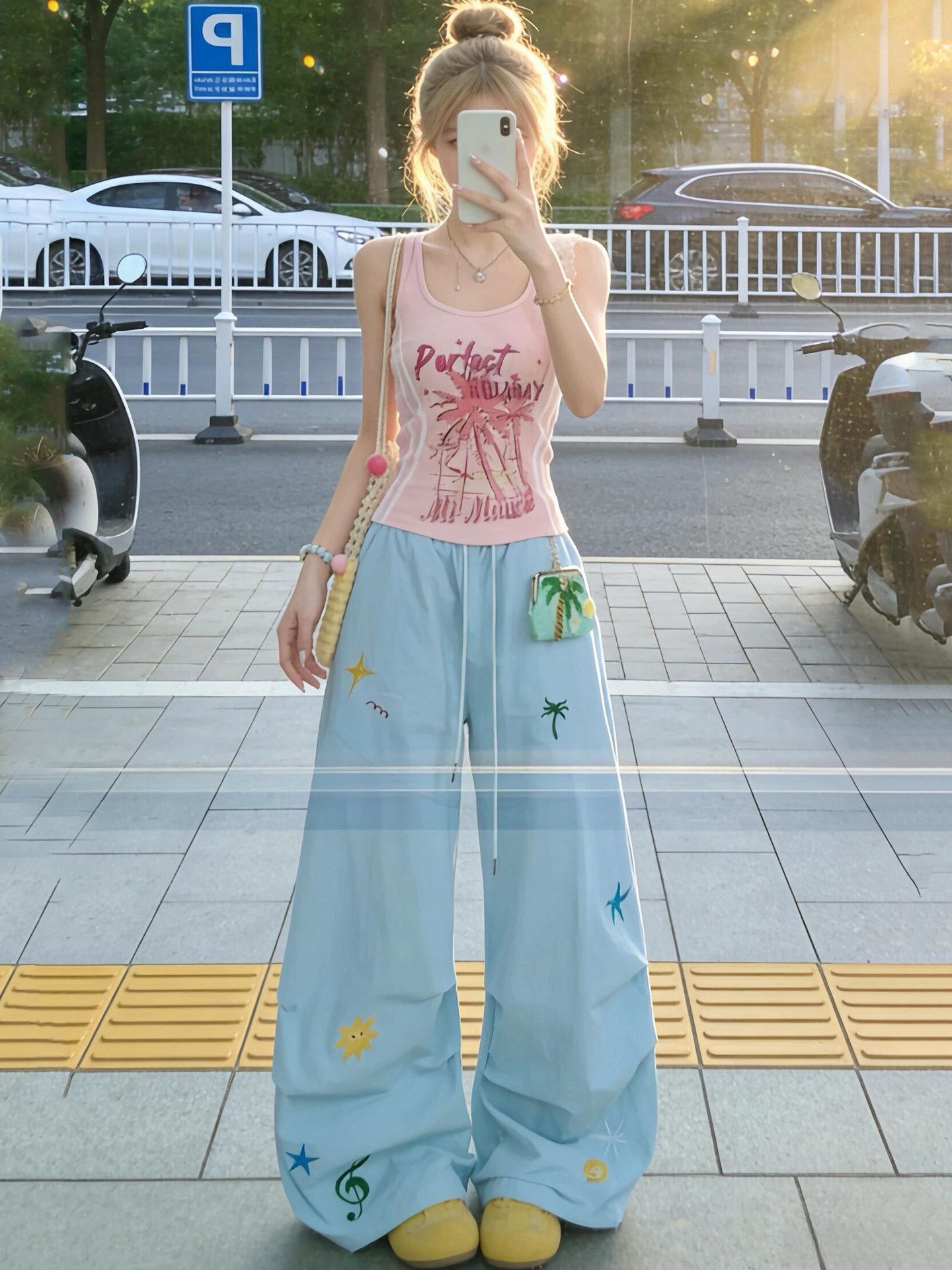 순면 복잡한 우유 실크 운동 캐주얼 바지 여성 봄 여름 루즈핏 와이드 레그 팬츠 자수 jazz 재즈 댄스 바닥 청소 바지