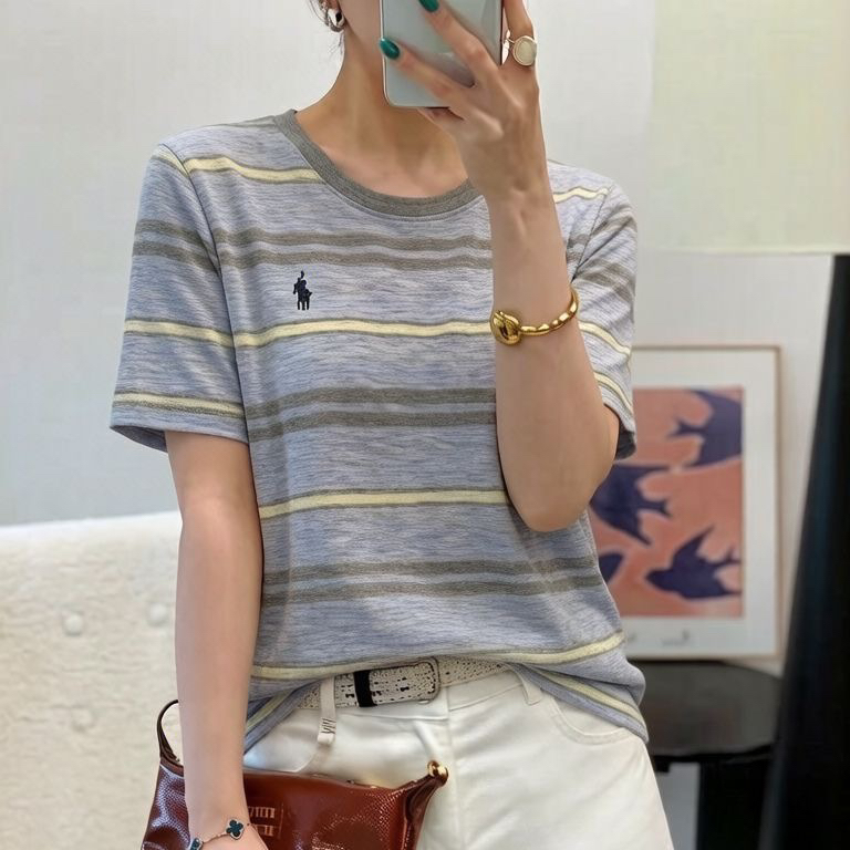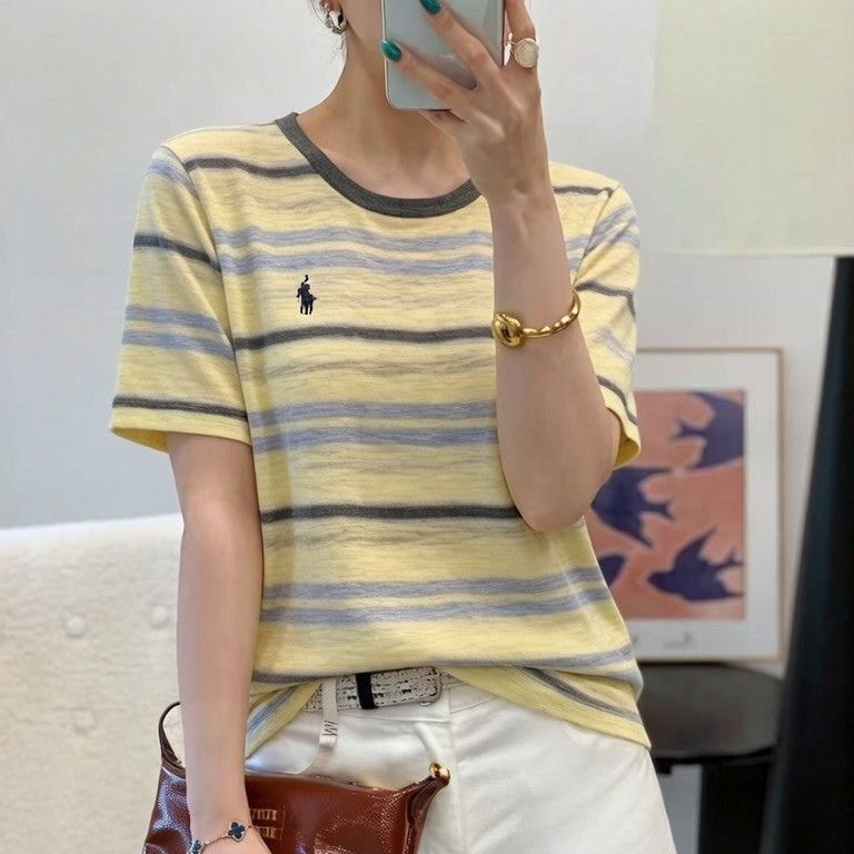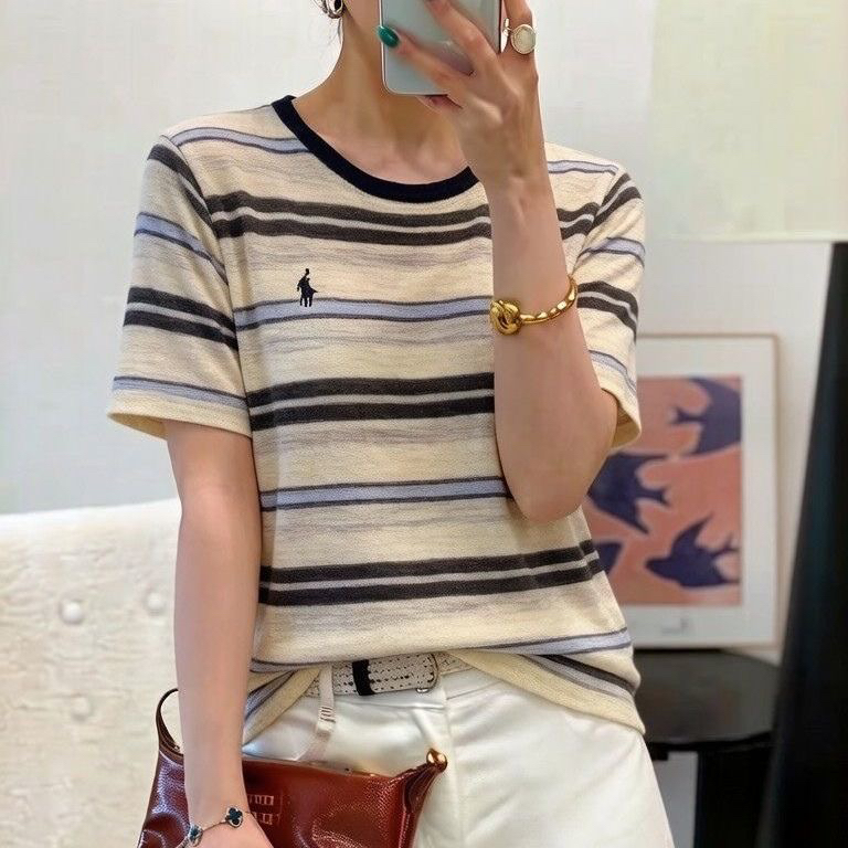 2026 년 새로운 디자인 티셔츠 반팔 패션 여름 맨위 슬림해 보이는 달콤함 다용도 패션 여성 스트라이프