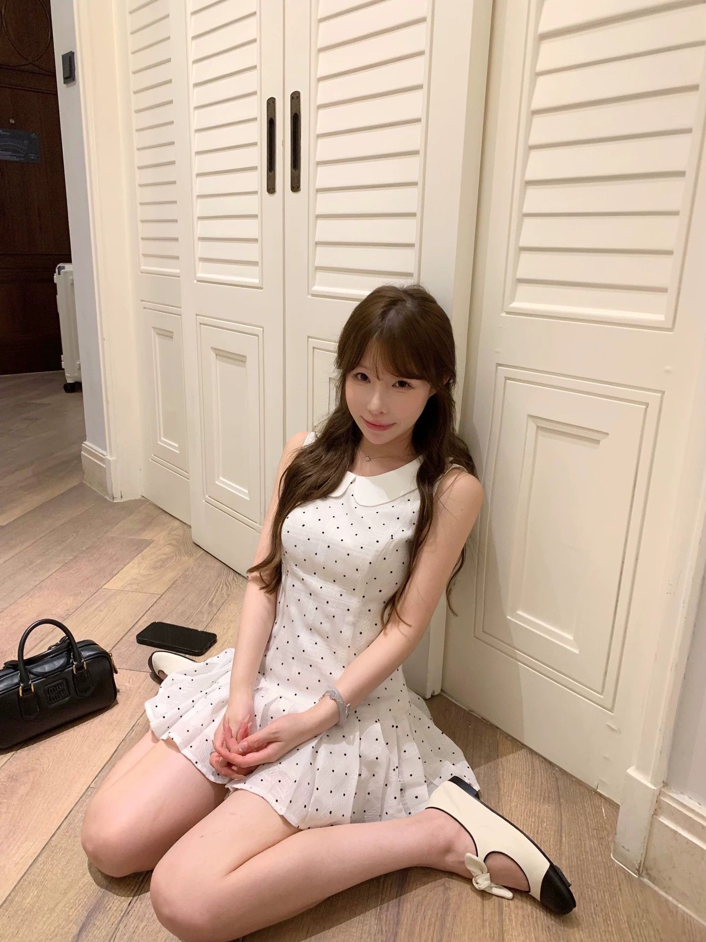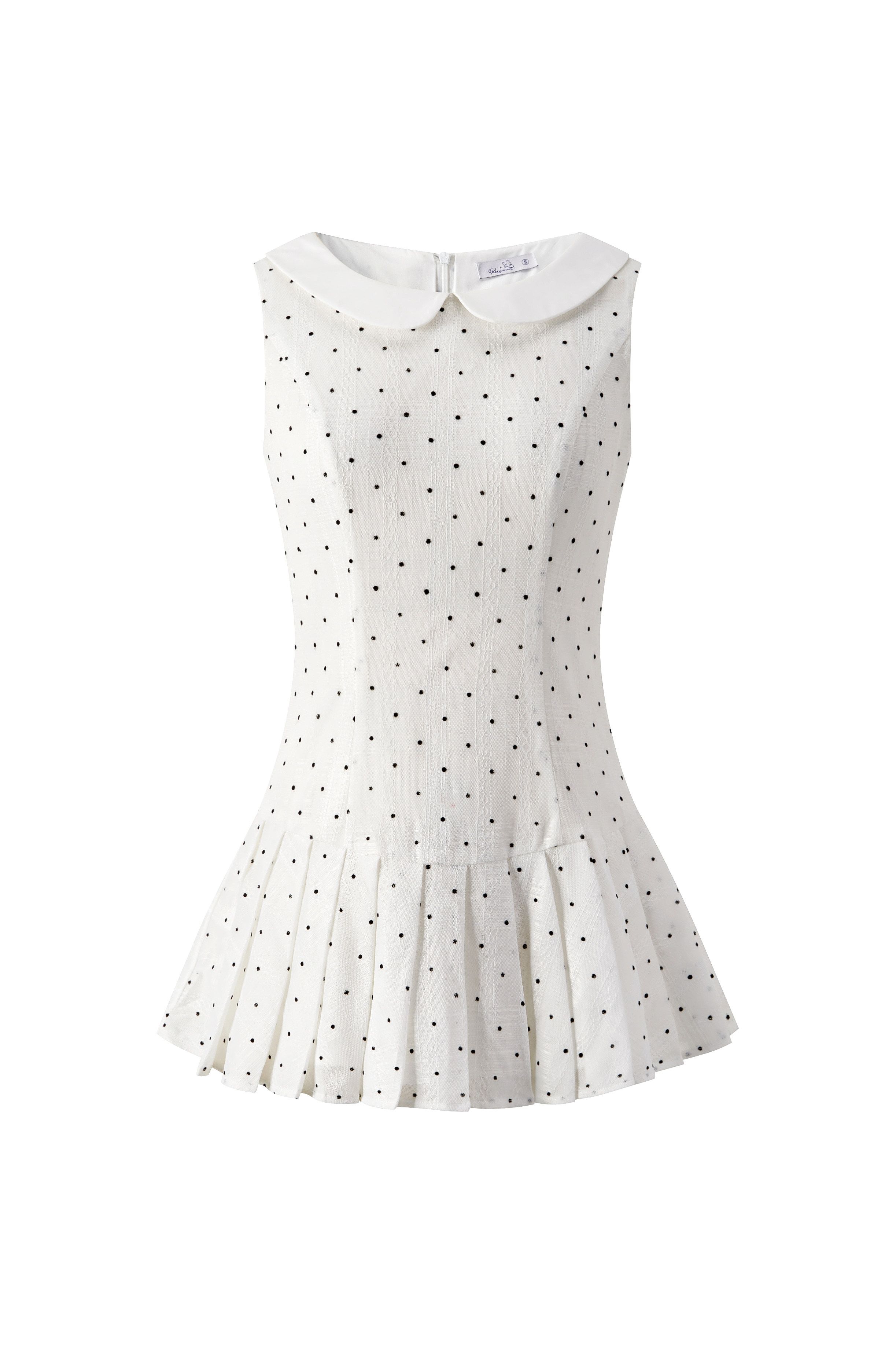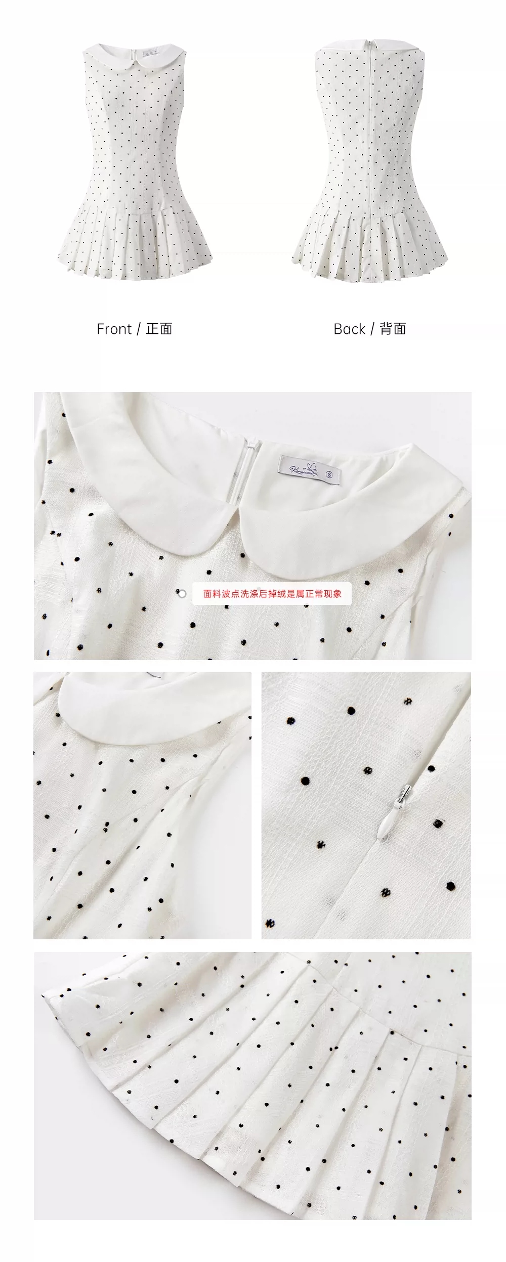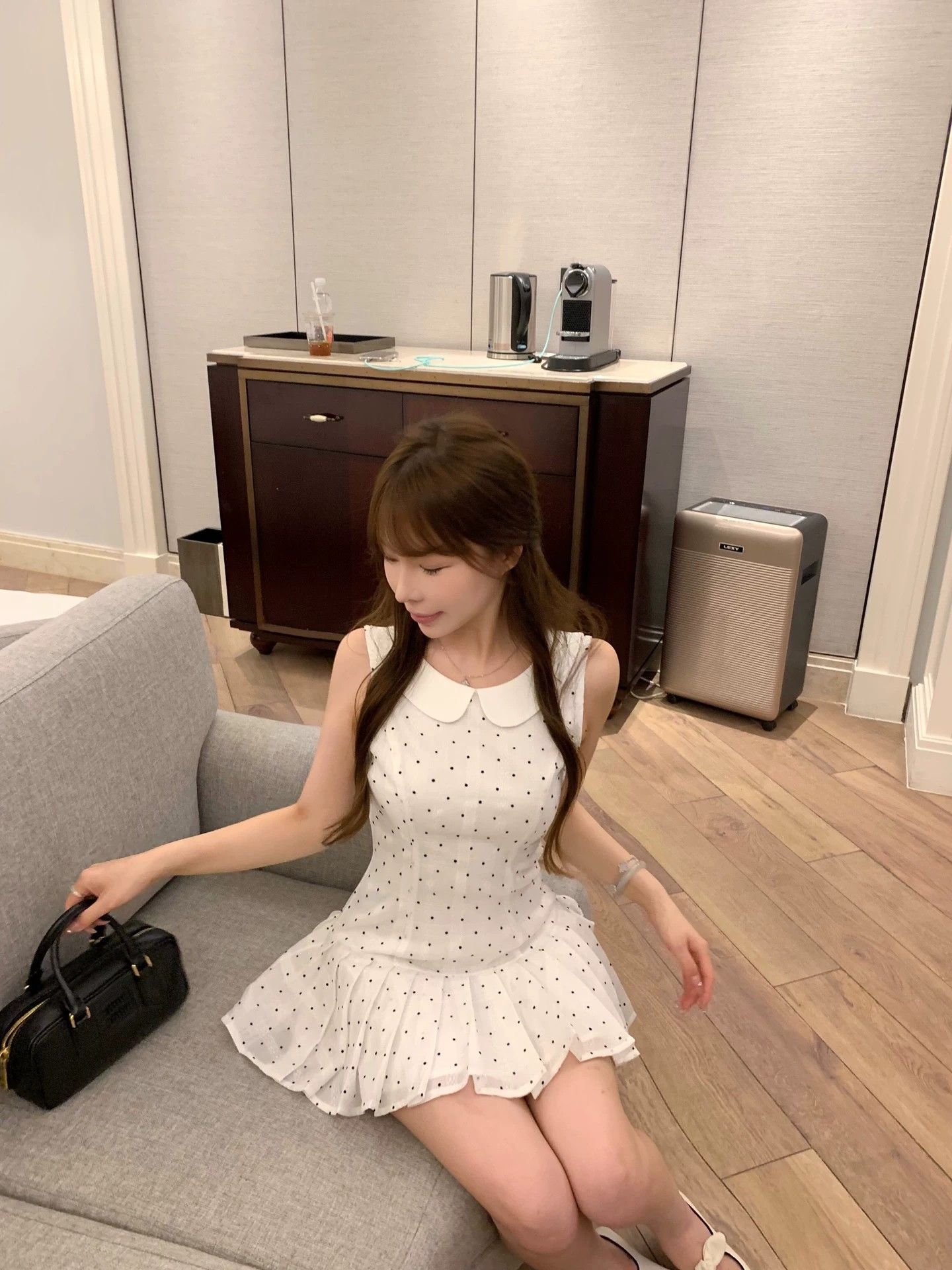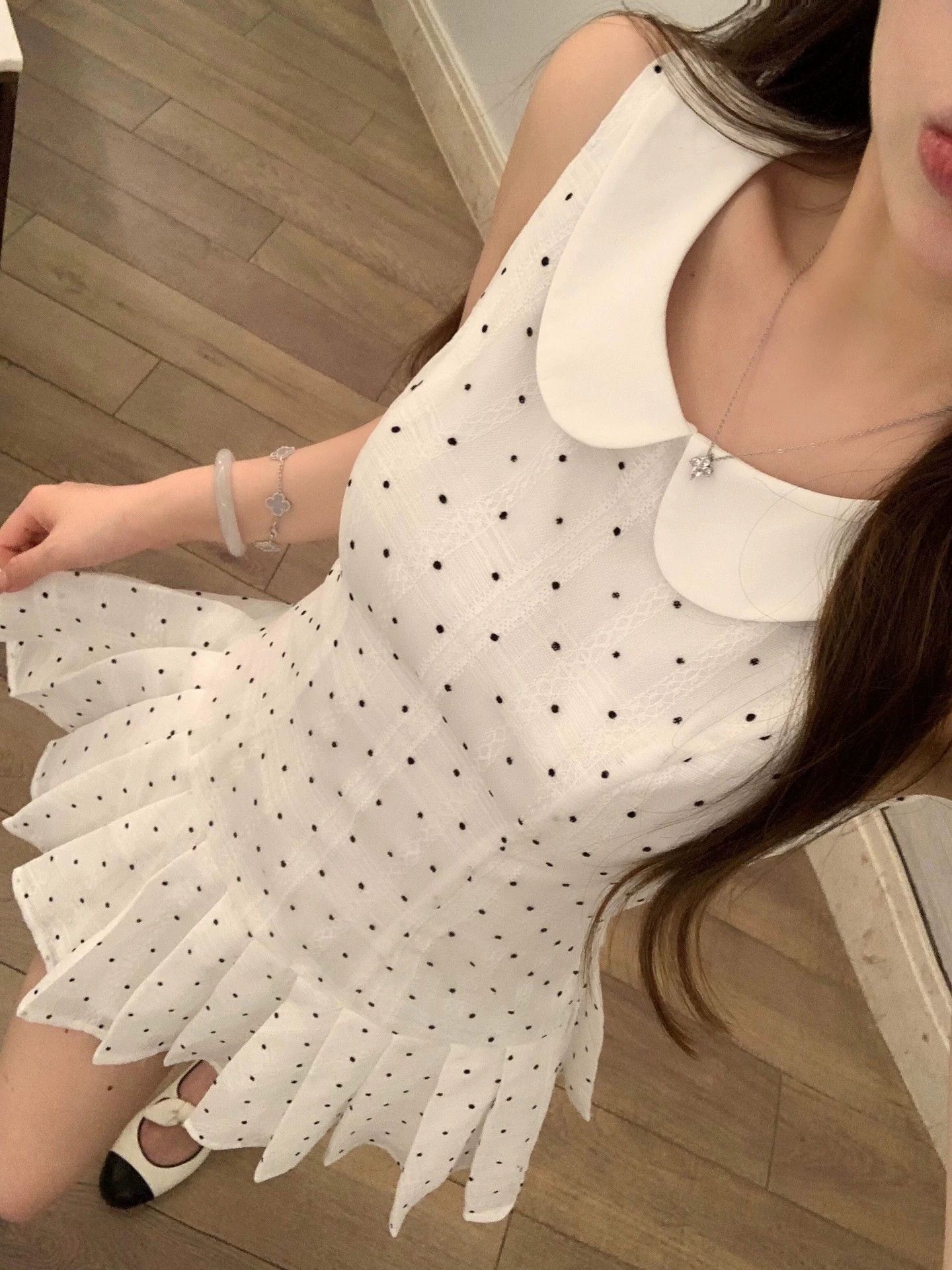 이중층 세트 인사이드 2026 새로운 화이트 도트 무늬 베이비 칼라 조끼 여성 드레스 봄 여름 허리 수축 플리츠 미니 스커트