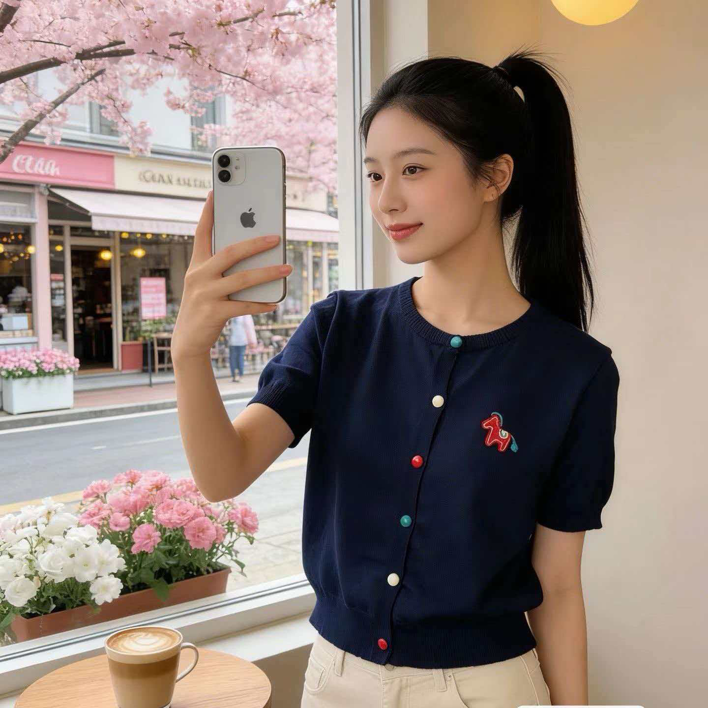 한 부서 작은 말 자수 색상 버클 얇은 스타일 니트 오픈 가디건 맨위 여성 출퇴근 다용도 슬림해 보이는 반팔 니트 오픈 가디건