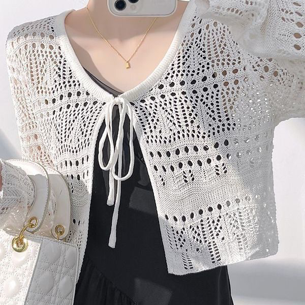 진주 버클 숄 여름 경기 슬립 치마 외부 가져 가라. 자외선 차단 블라우스 얇은 스타일 구덩이 기사 라운드 넥 긴팔 니트 오픈 가디건