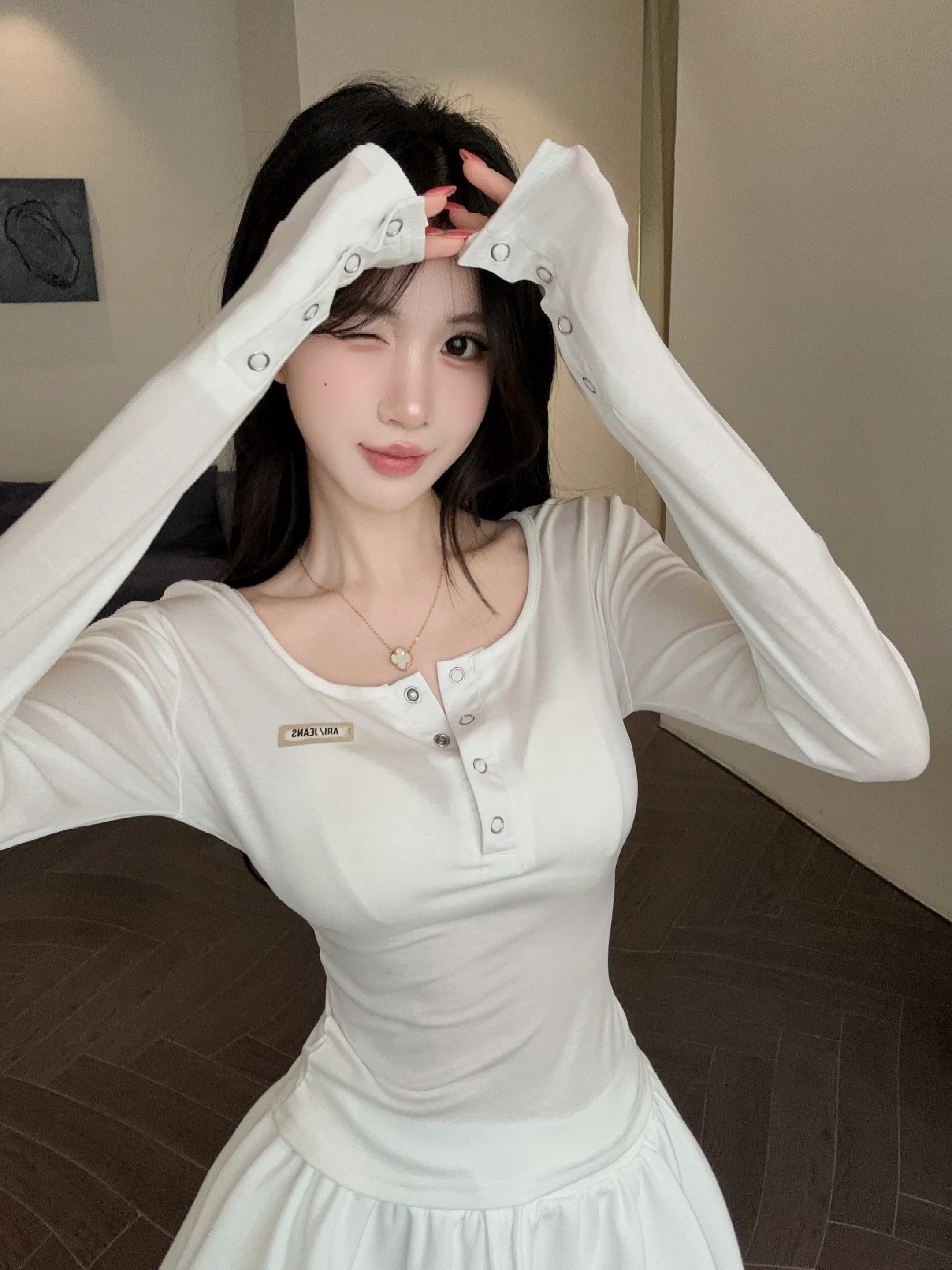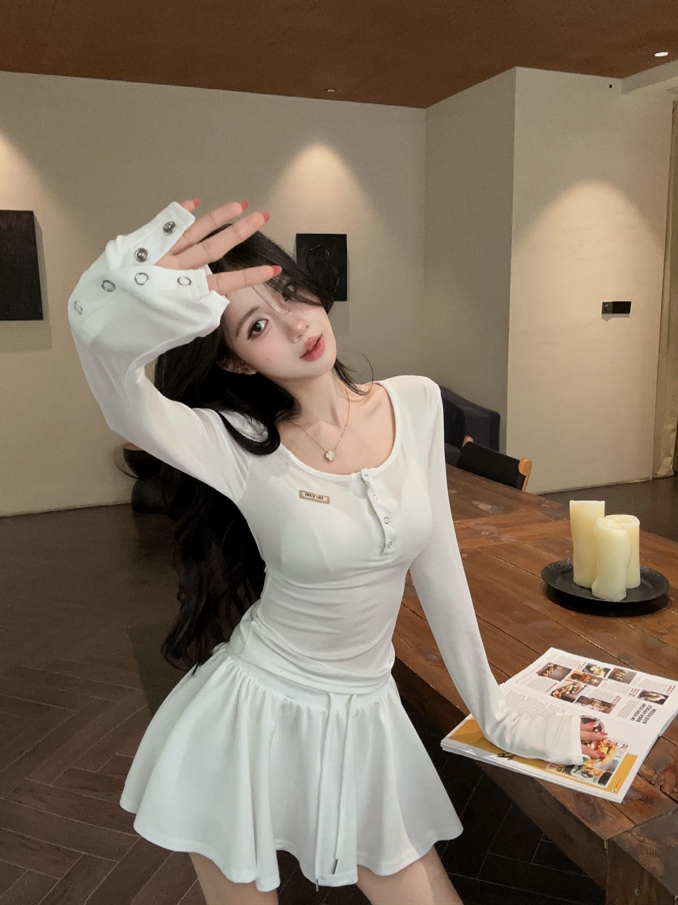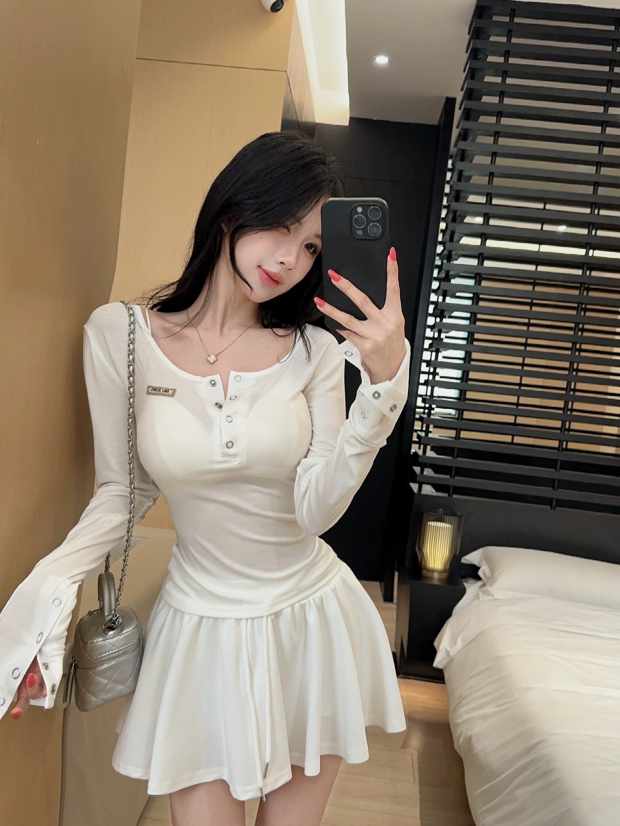 실사 정가 여름 마이크로 ~을 통해 긴팔 티셔츠 여성 자외선 차단 블라우스 밴딩 노출 방지 미니 스커트 투피스 슈트