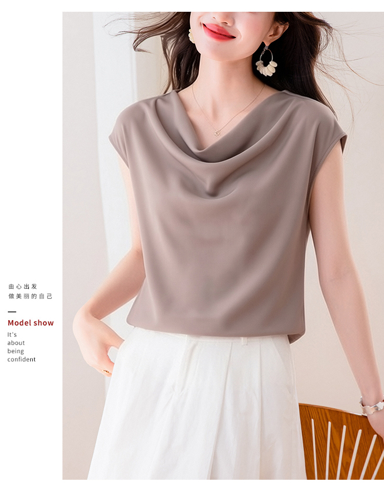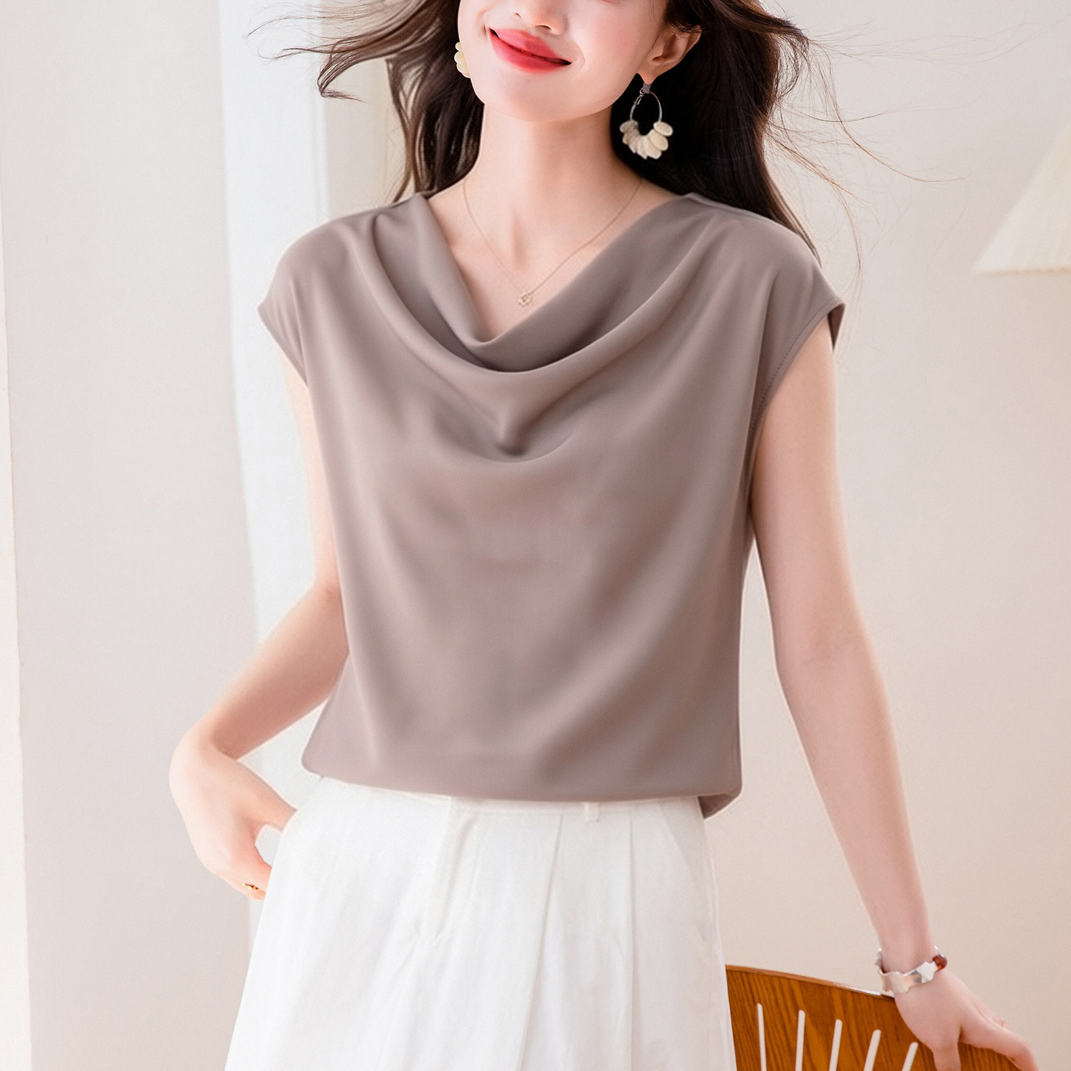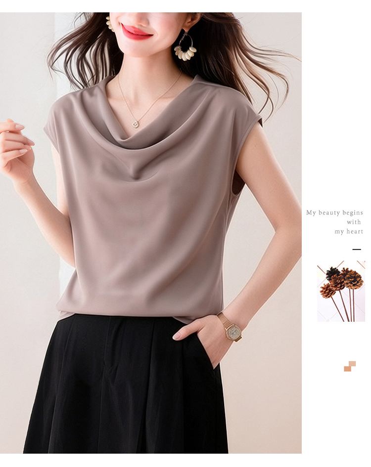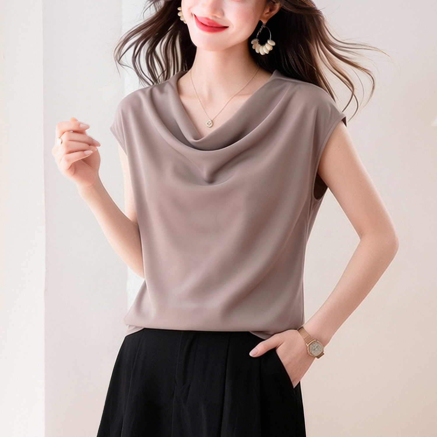 실사 2026 새로운 우아함 바람 흔들다 칼라 반팔 맨위 여성 샴페인 다용도 고급 센스 출퇴근 품격 맨위