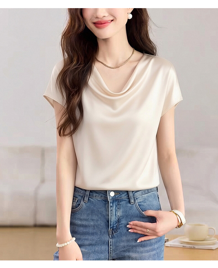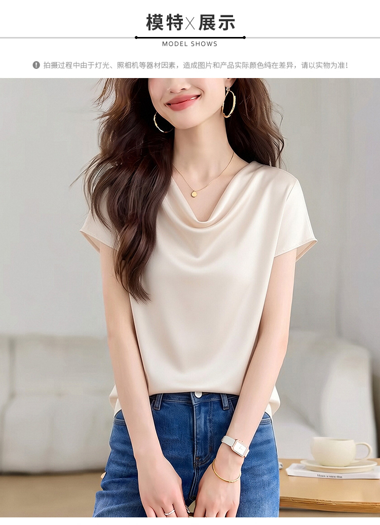 실사 여름 신제품 빛 럭셔리 외국 가스 라운드 넥 티셔츠 여성 2026 여름 새로운 여성용 짧은 소매 맨위 슬림해 보이는 작은 셔츠