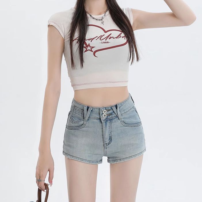 인터넷 유명인 같은 단락 2026 여름 새로운 아메리칸 핫걸 금속 버클 디자인 워시 워터 밀 화이트 3 점 데님 반바지 여성