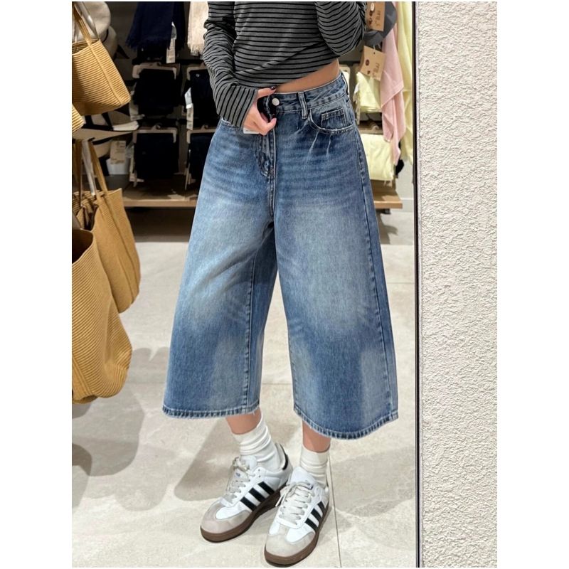 아메리칸 레트로 넓은 다리 데님 7부 바지 여성 여름 새로운 루즈핏 슬림해 보이는 배 종류 몸 스트레이트 중 바지 트렌디