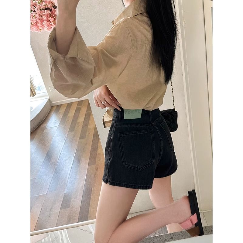 2026 트임 하이웨이스트 데님 반바지 여성 여름 빅 사이즈 검정색 루즈핏 슬림해 보이는 새로운 품격 미니멀리즘 뜨거운 바지
