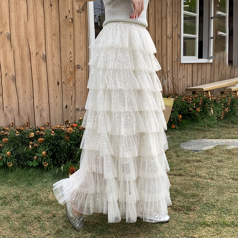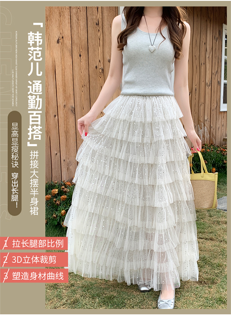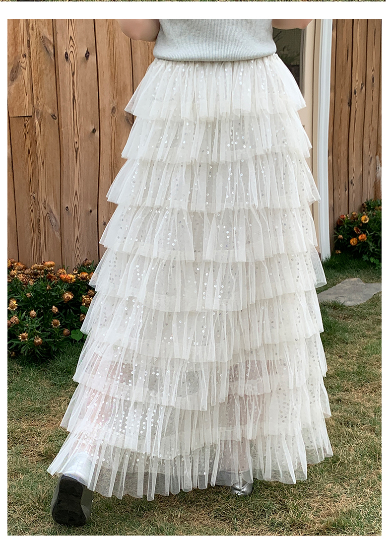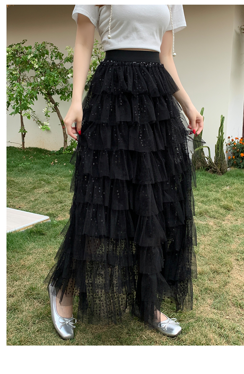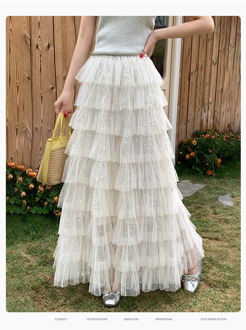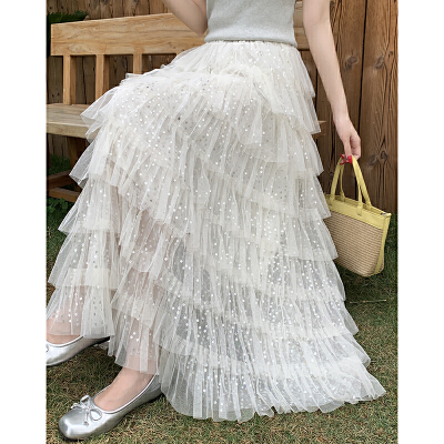 실사 낭만주의 바람 다중 레이어 프릴 케이크 반신 스커트 여성 하이웨이스트 슬림해 보이는 도루 센스 한 마디 큰 진자 슈퍼 요정 롱 스커트