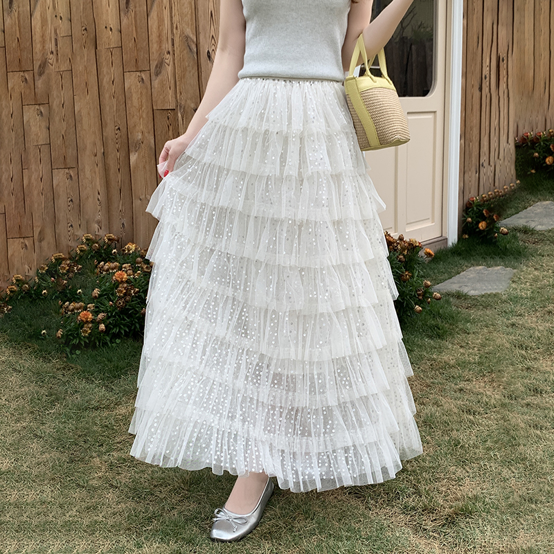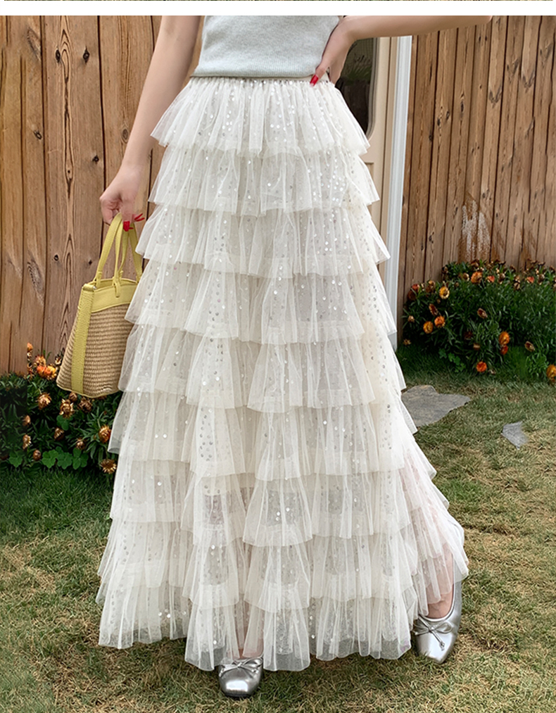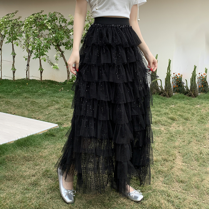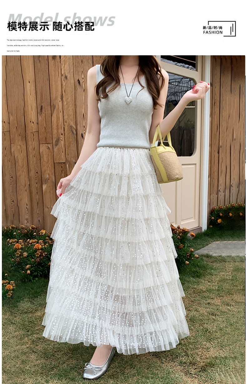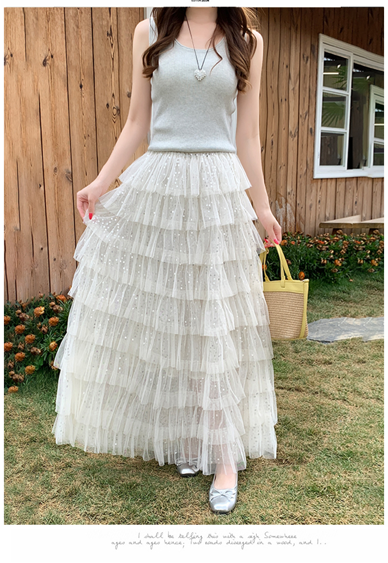 실사 낭만주의 바람 다중 레이어 프릴 케이크 반신 스커트 여성 하이웨이스트 슬림해 보이는 도루 센스 한 마디 큰 진자 슈퍼 요정 롱 스커트