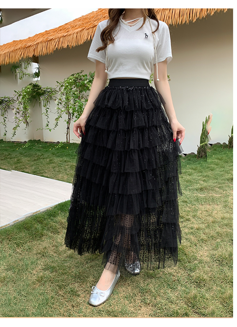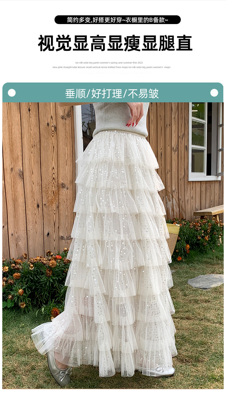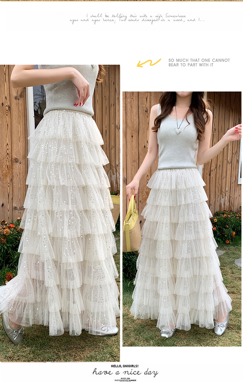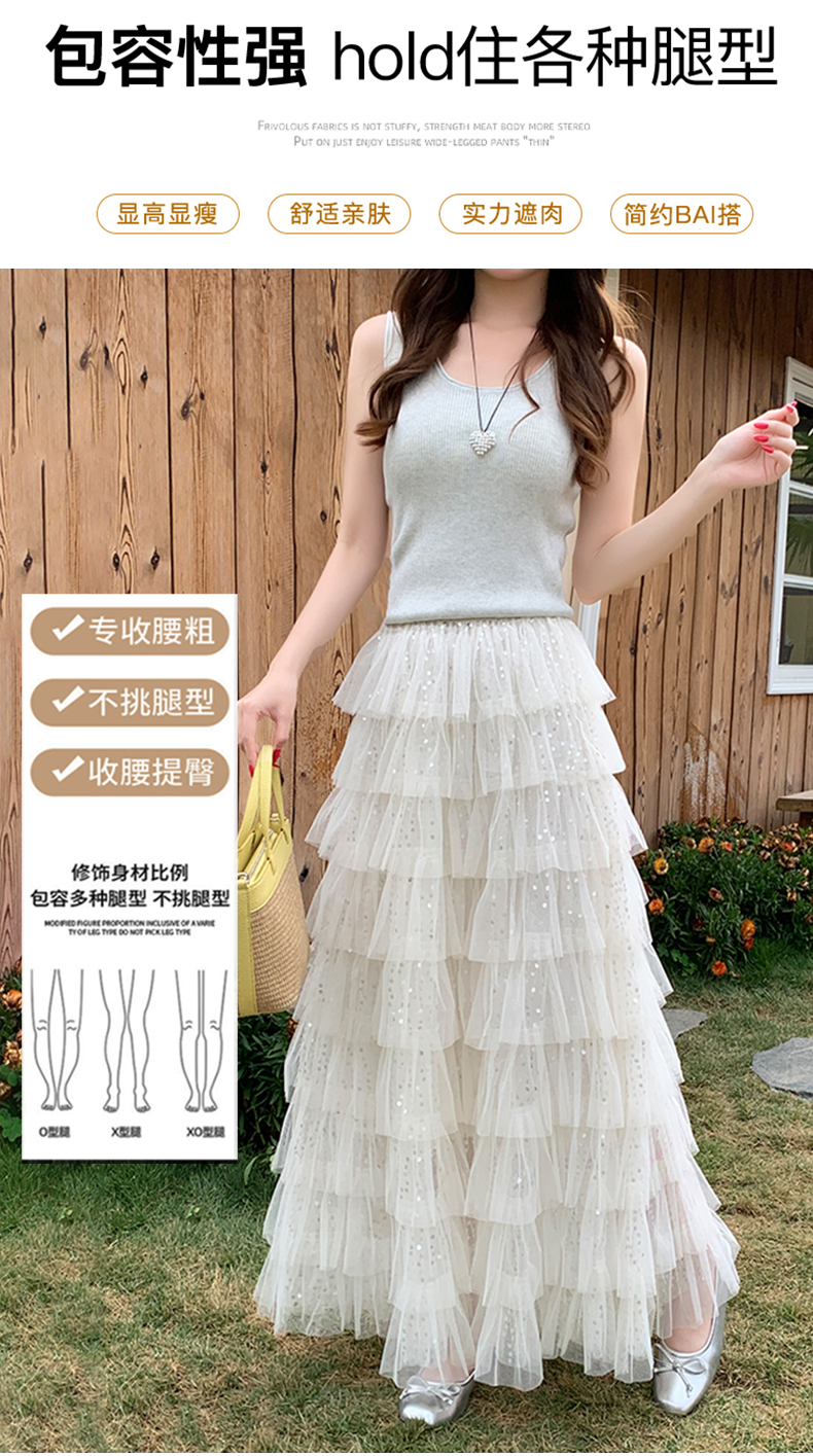 실사 낭만주의 바람 다중 레이어 프릴 케이크 반신 스커트 여성 하이웨이스트 슬림해 보이는 도루 센스 한 마디 큰 진자 슈퍼 요정 롱 스커트