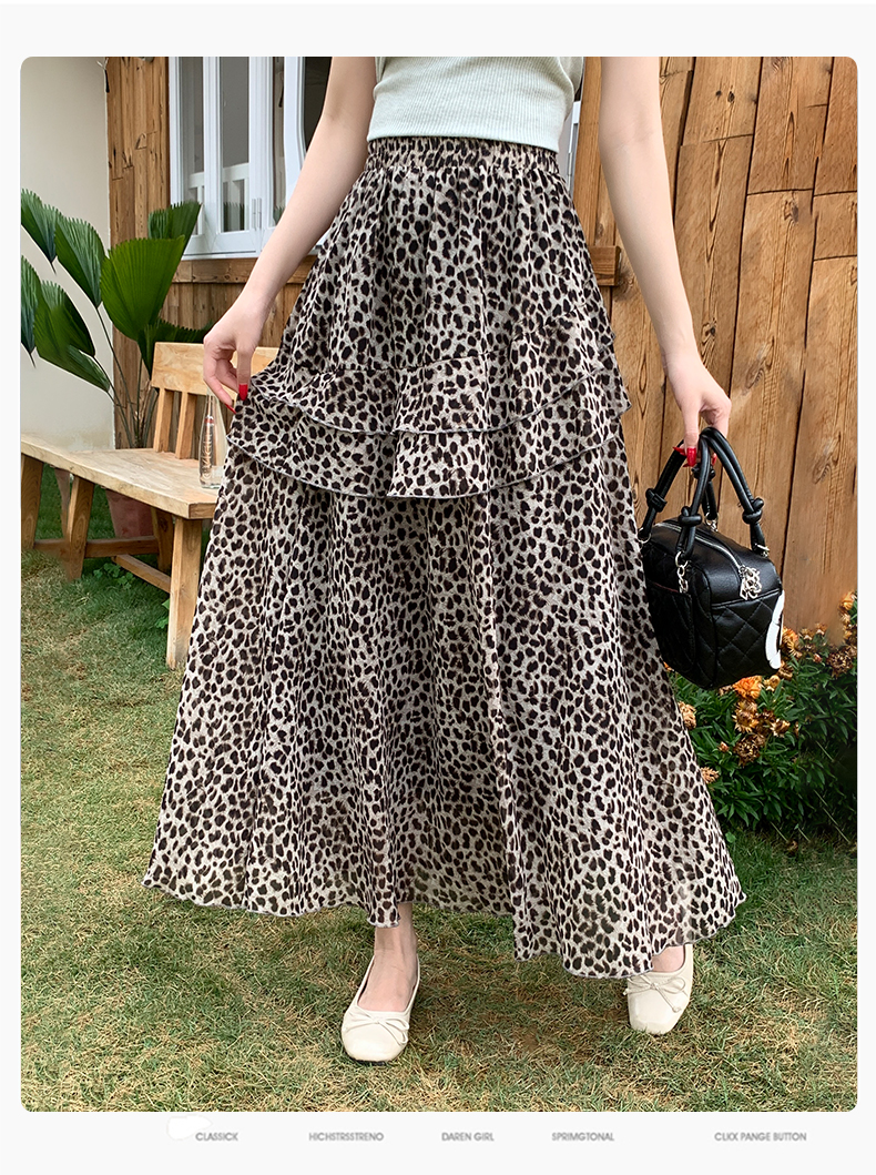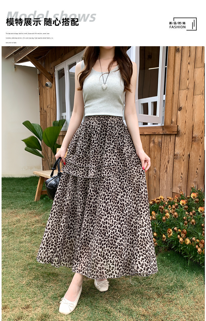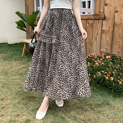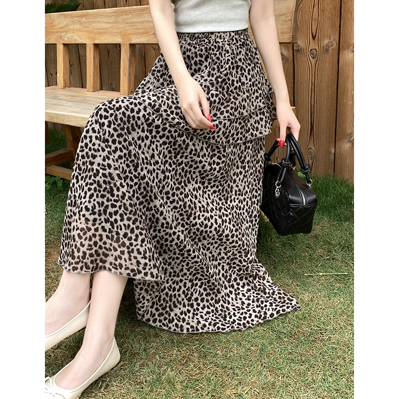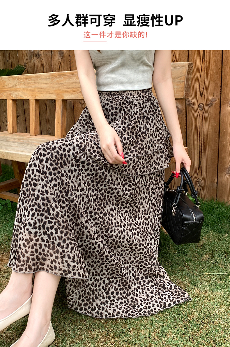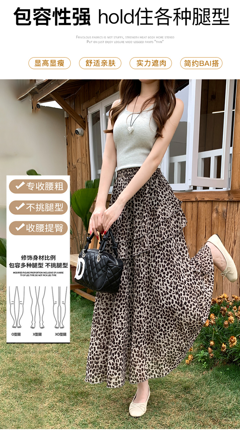 실사 2026 새로운 여성 하이웨이스트 레오파드 무늬 반신 스커트 느긋한 바람 슬림해 보이는 롱 스커트 디자인 센스 출퇴근 다용도 치마