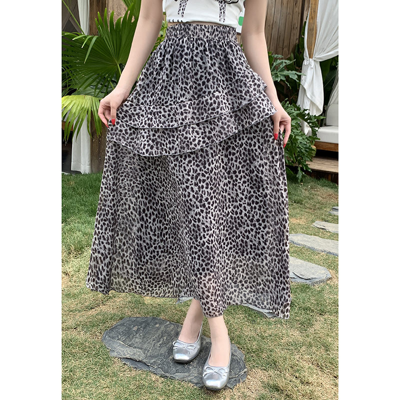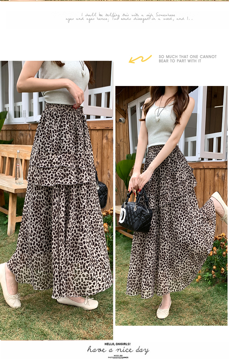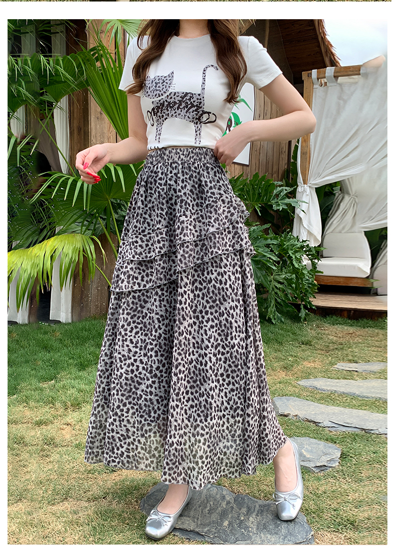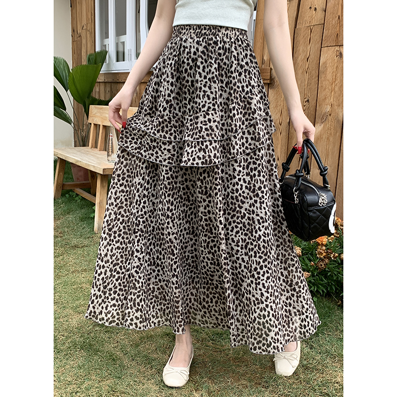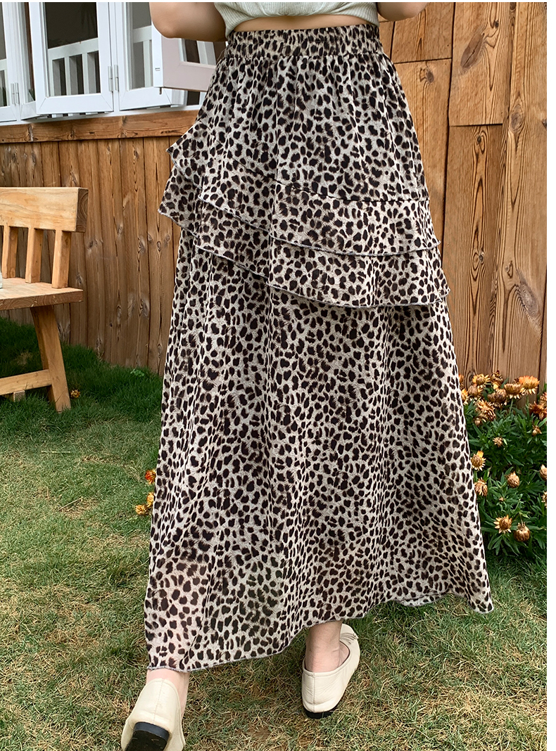 실사 2026 새로운 여성 하이웨이스트 레오파드 무늬 반신 스커트 느긋한 바람 슬림해 보이는 롱 스커트 디자인 센스 출퇴근 다용도 치마