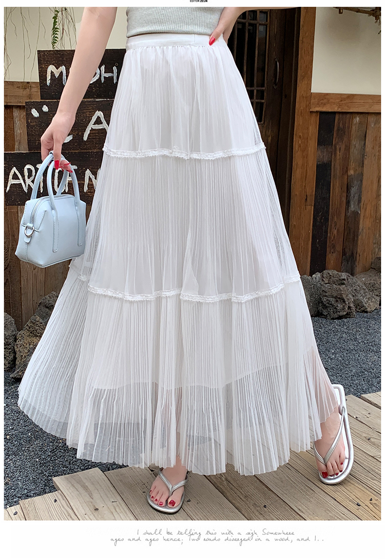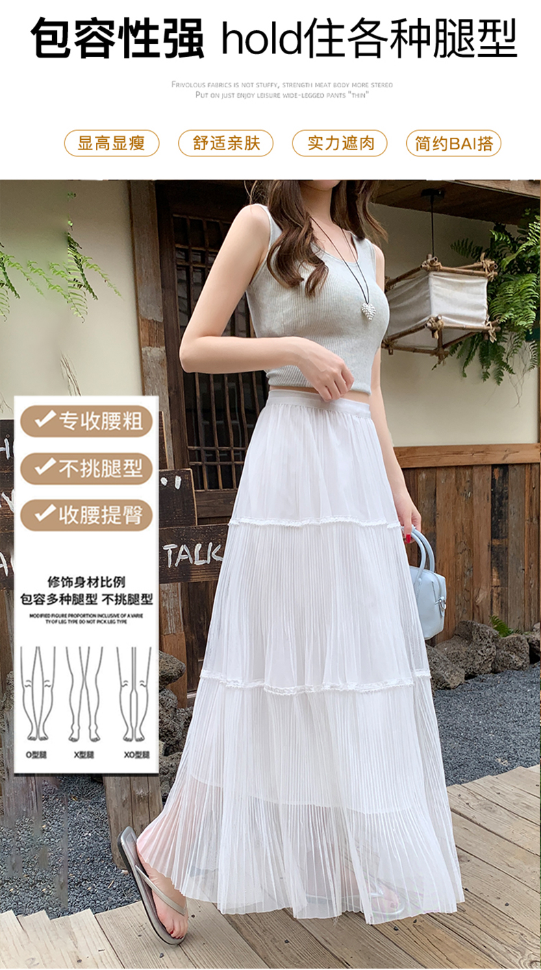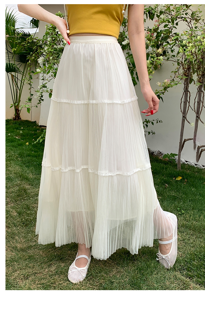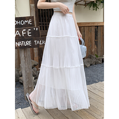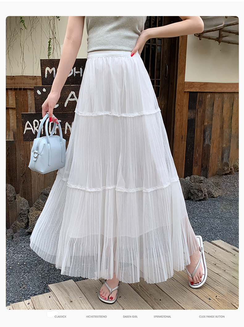 실사 프랑스식 고급 센스 망사 치마 중간 길이 여성 2026 새로운 느슨함 센스 하이웨이스트 한 마디 플리츠 반신 스커트