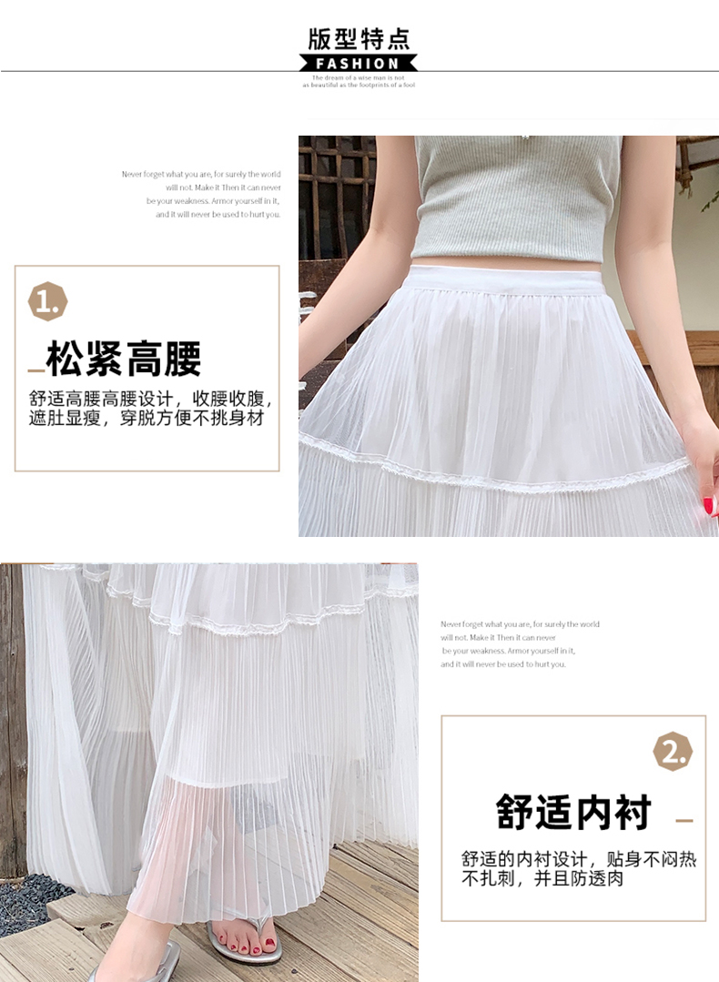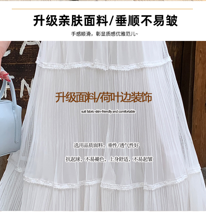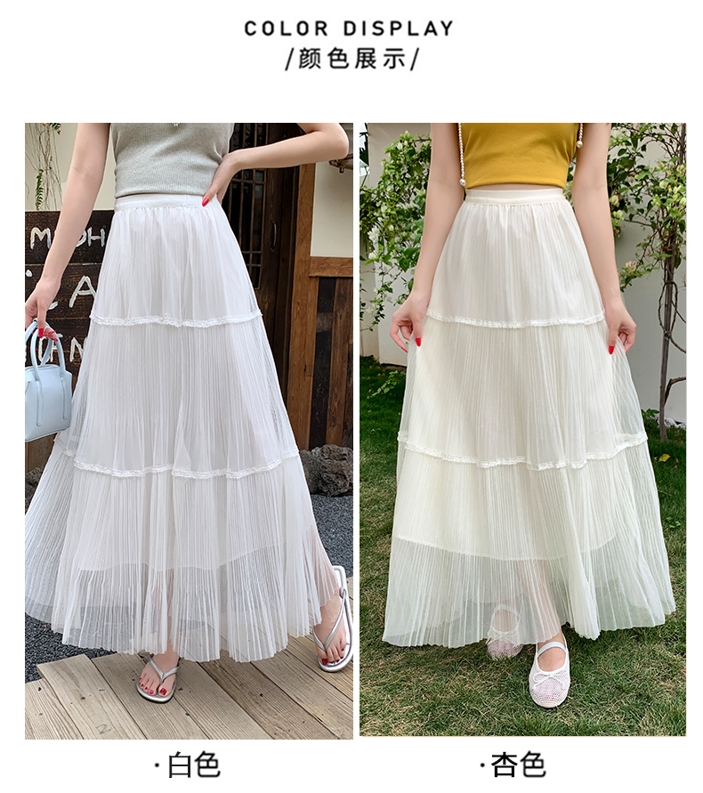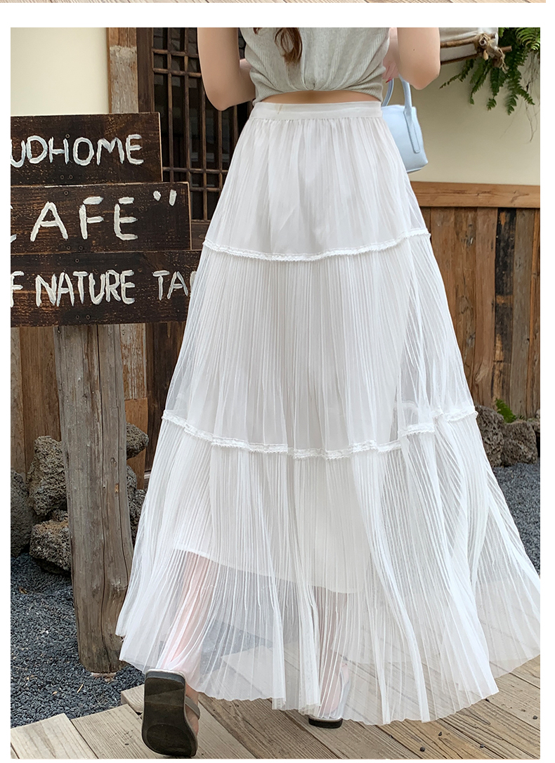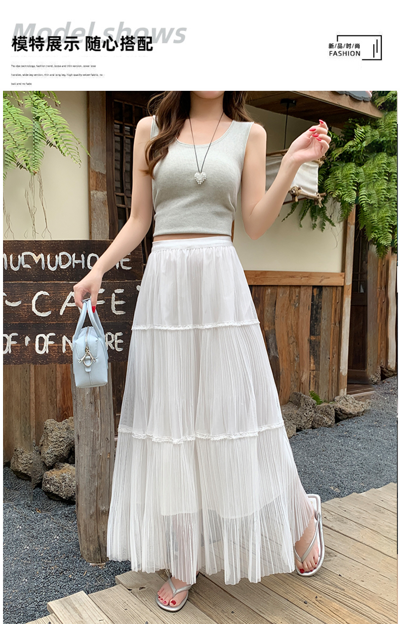 실사 프랑스식 고급 센스 망사 치마 중간 길이 여성 2026 새로운 느슨함 센스 하이웨이스트 한 마디 플리츠 반신 스커트