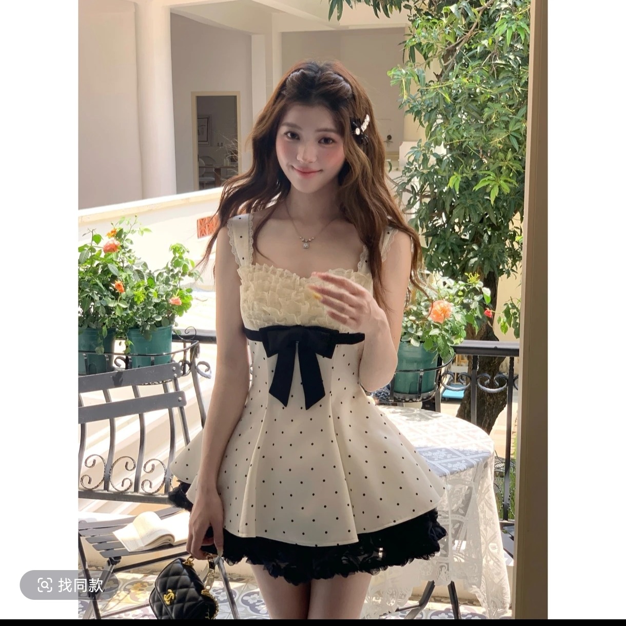 실사 프랑스식 고급 센스 품격 도트 무늬 V넥 민소매 셔츠 패션 루즈핏 연령 감소 다용도 맨위 chic