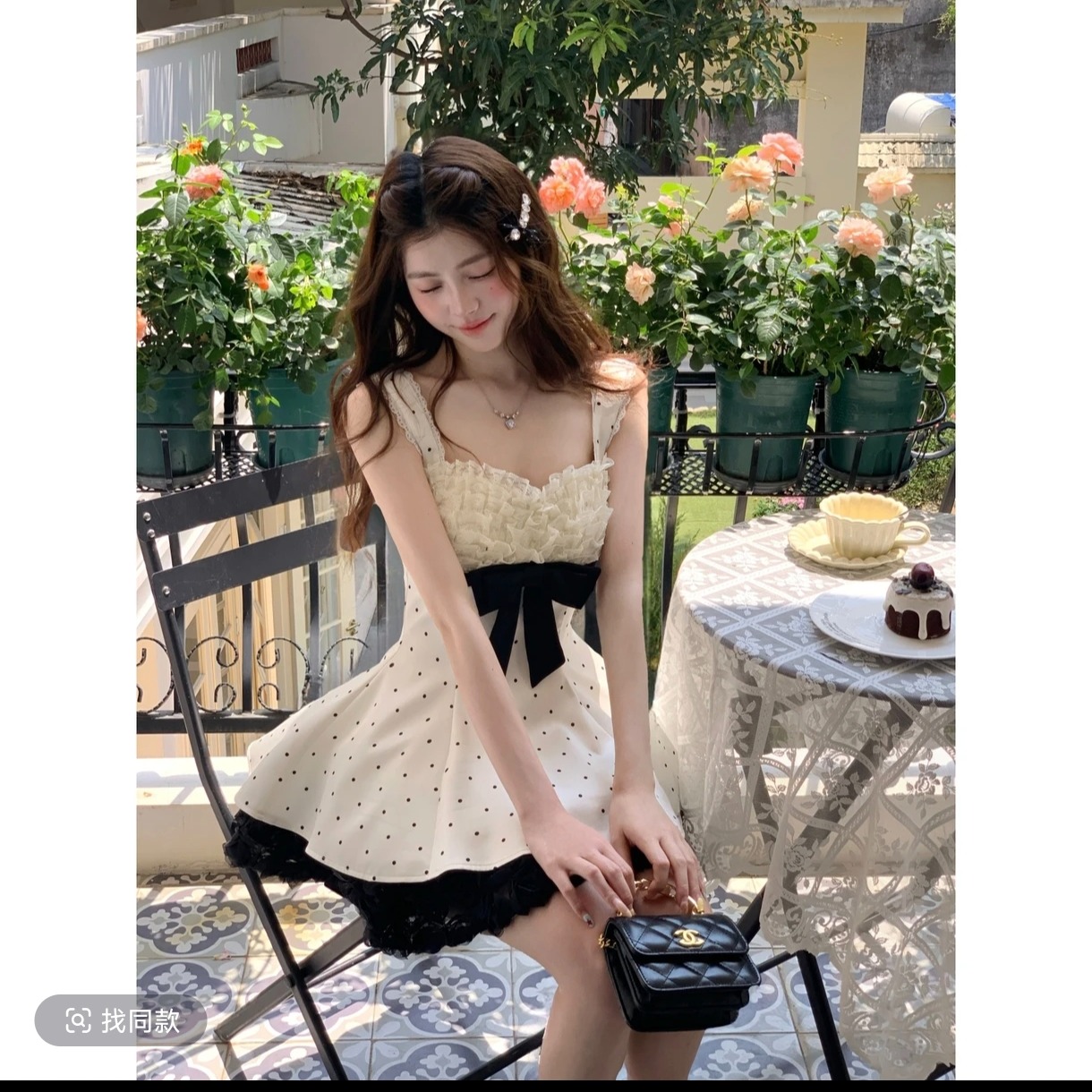 4 28 신제품 프랑스식 소녀 센스 프릴 케이크 층 도트 무늬 슬립 허리 수축 셔츠