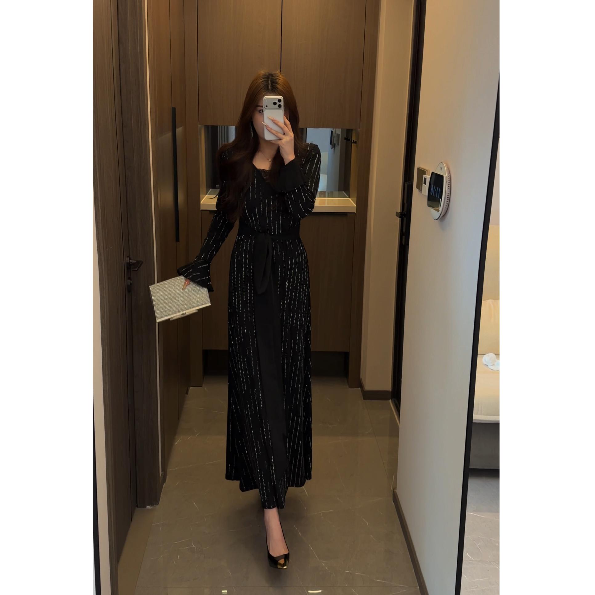 빅 사이즈 여성 의류 여름 레트로 그는 벤 바람 검정색 작은 대중 빛 럭셔리 품격 허리 수축 롱 스커트