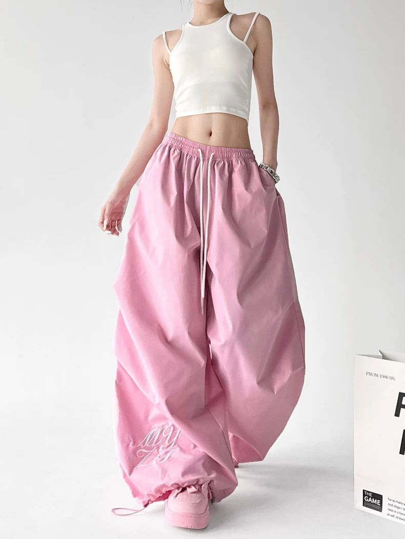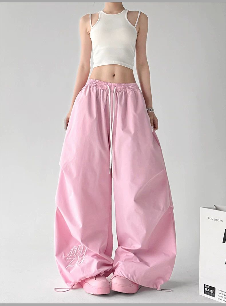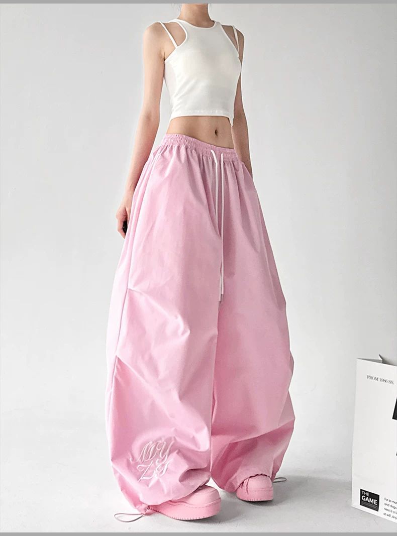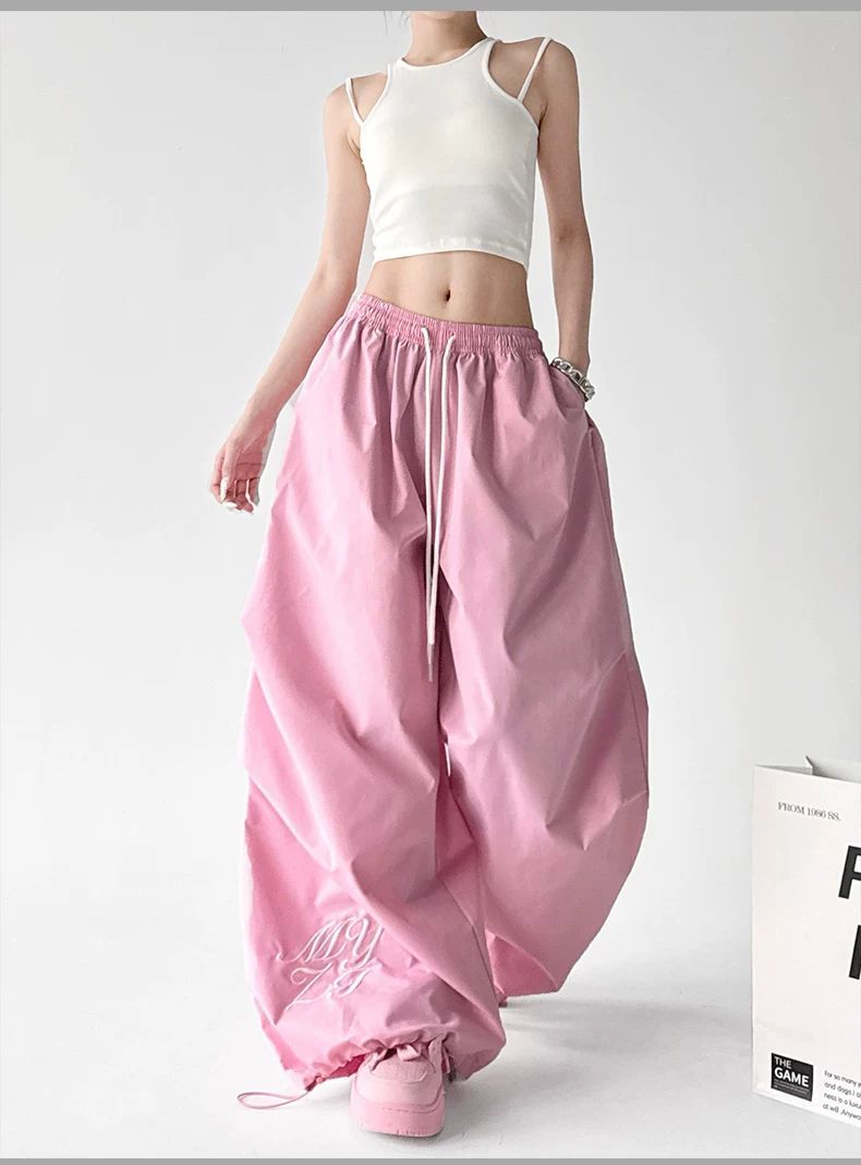 핑크색 춤추기 다용도 와이드 레깅스 바지 2026 봄 드레스 새로운 재즈 슬림해 보이는 주름 넓은 다리 캐주얼 낙하산 병 바지