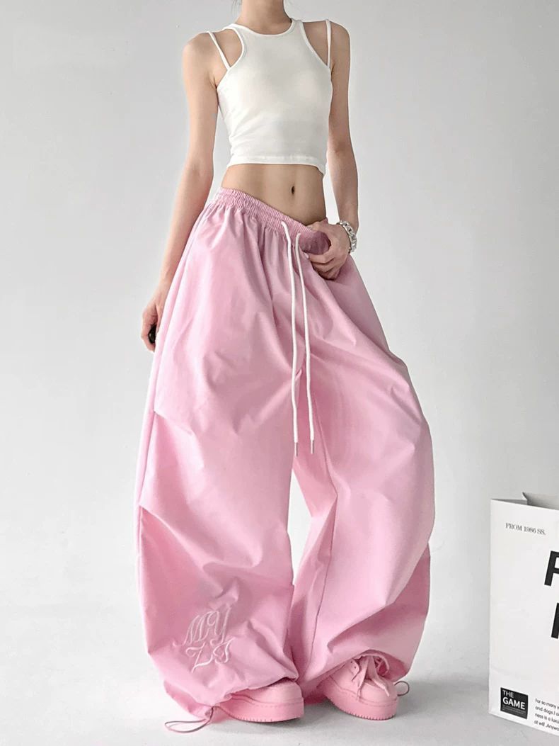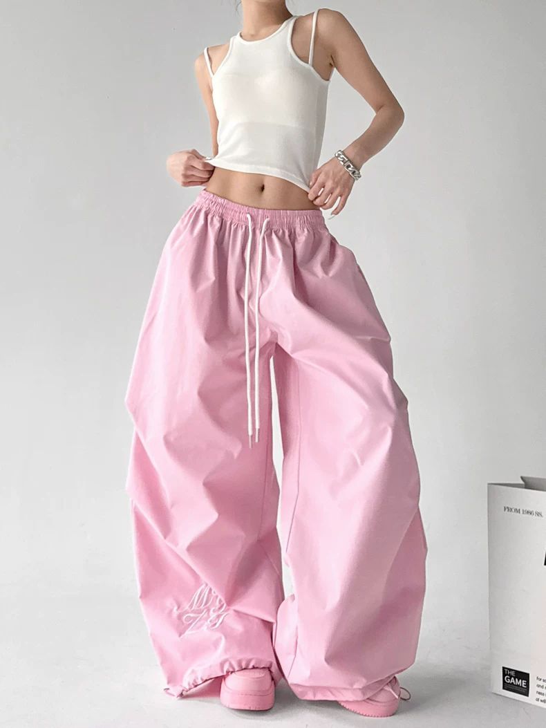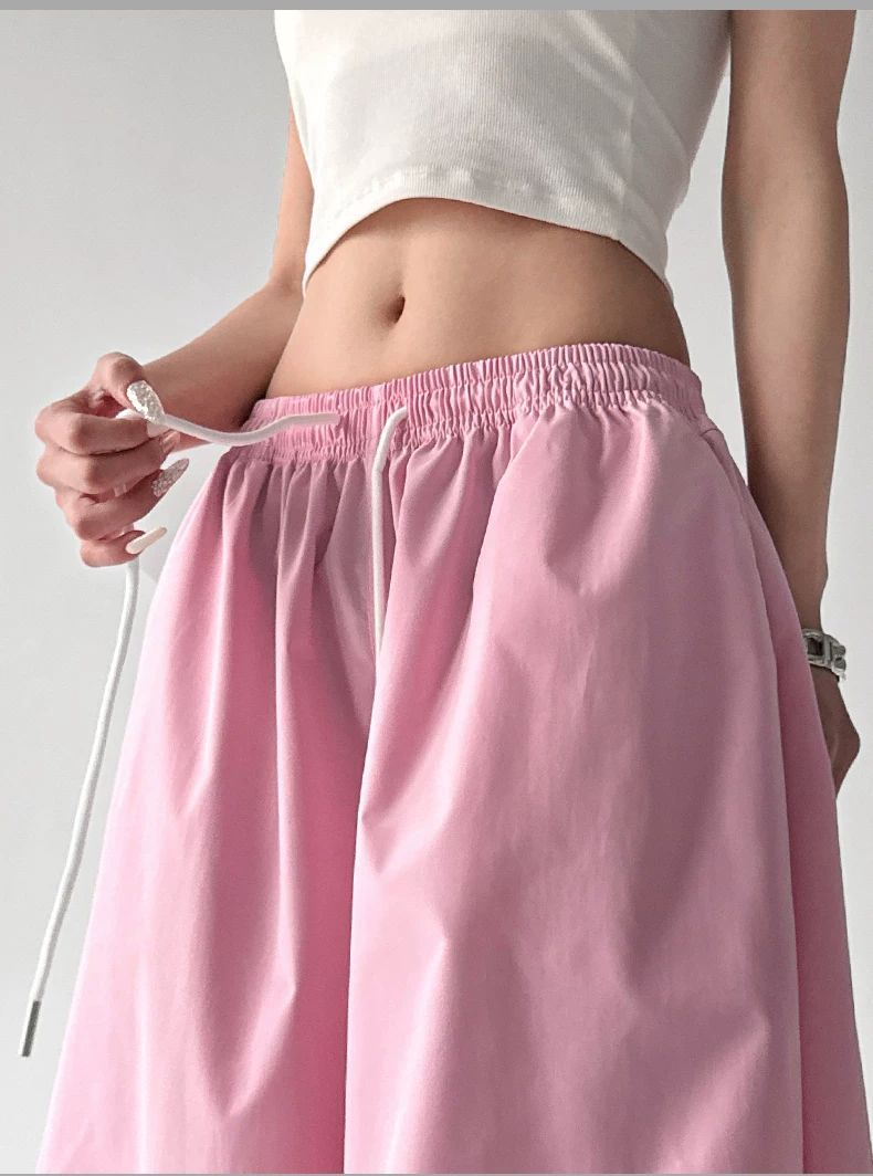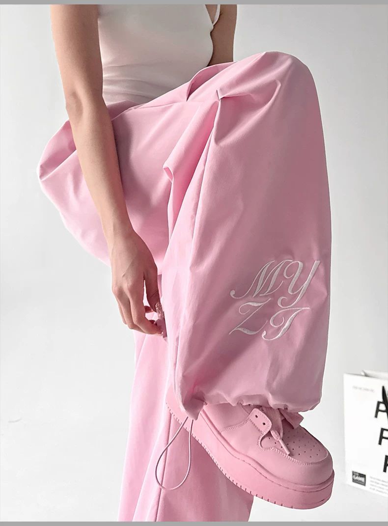 핑크색 춤추기 다용도 와이드 레깅스 바지 2026 봄 드레스 새로운 재즈 슬림해 보이는 주름 넓은 다리 캐주얼 낙하산 병 바지